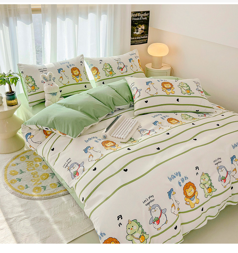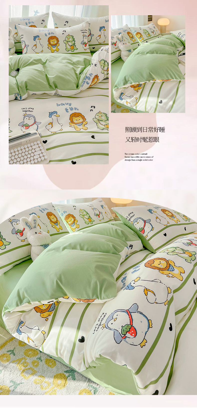 商品名称:倾慕家纺 2024新款时尚风全棉13070亲肤印花系列四件套 萌宠乐园