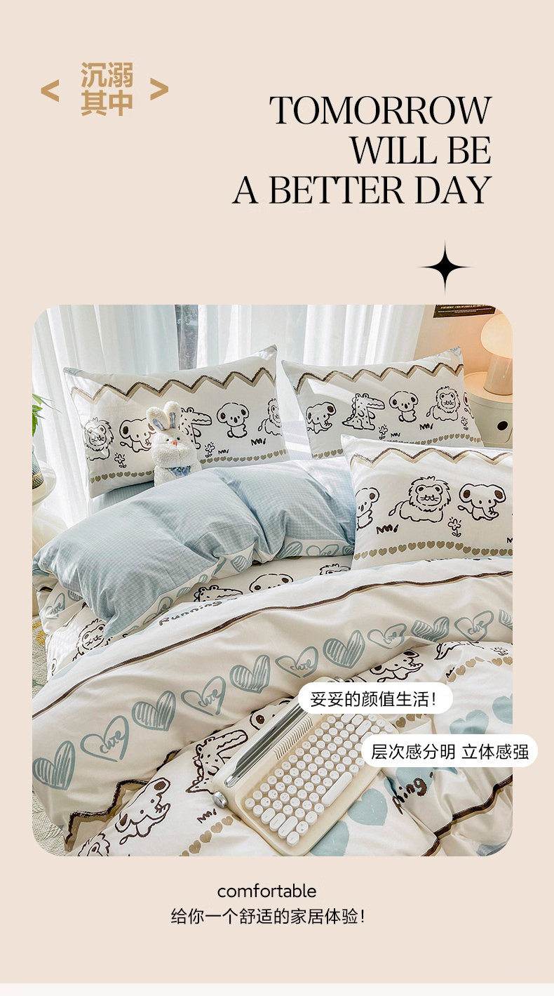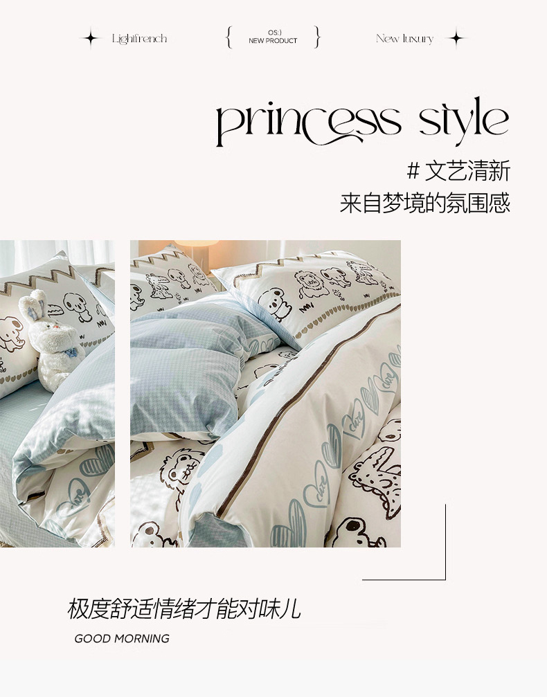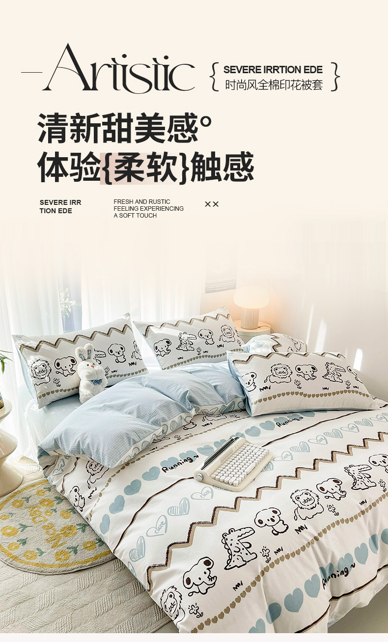 (总)倾慕 2025新款6D立体雪花绒系列四件套,北欧小熊,波波兔,波点头像,格格狗,欢乐小虎,活泼小兔,咖啡熊兔,礼物小狗,萌宠小兔,奶茶小龙灰,奶茶小龙蓝,奶茶小熊,汽车小熊,森林公园,时光小狗,时尚猫咪,小皮皮