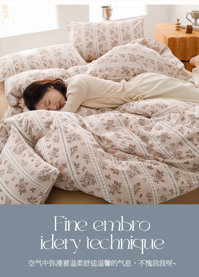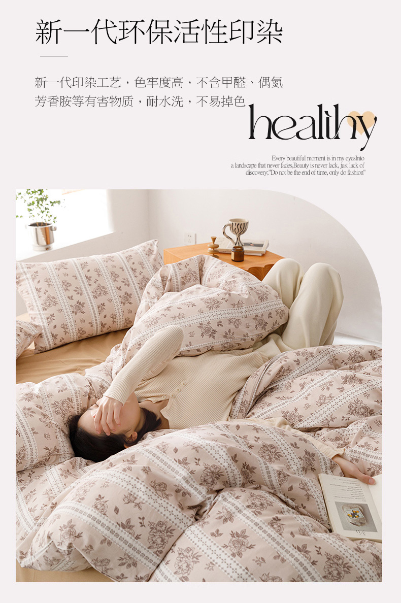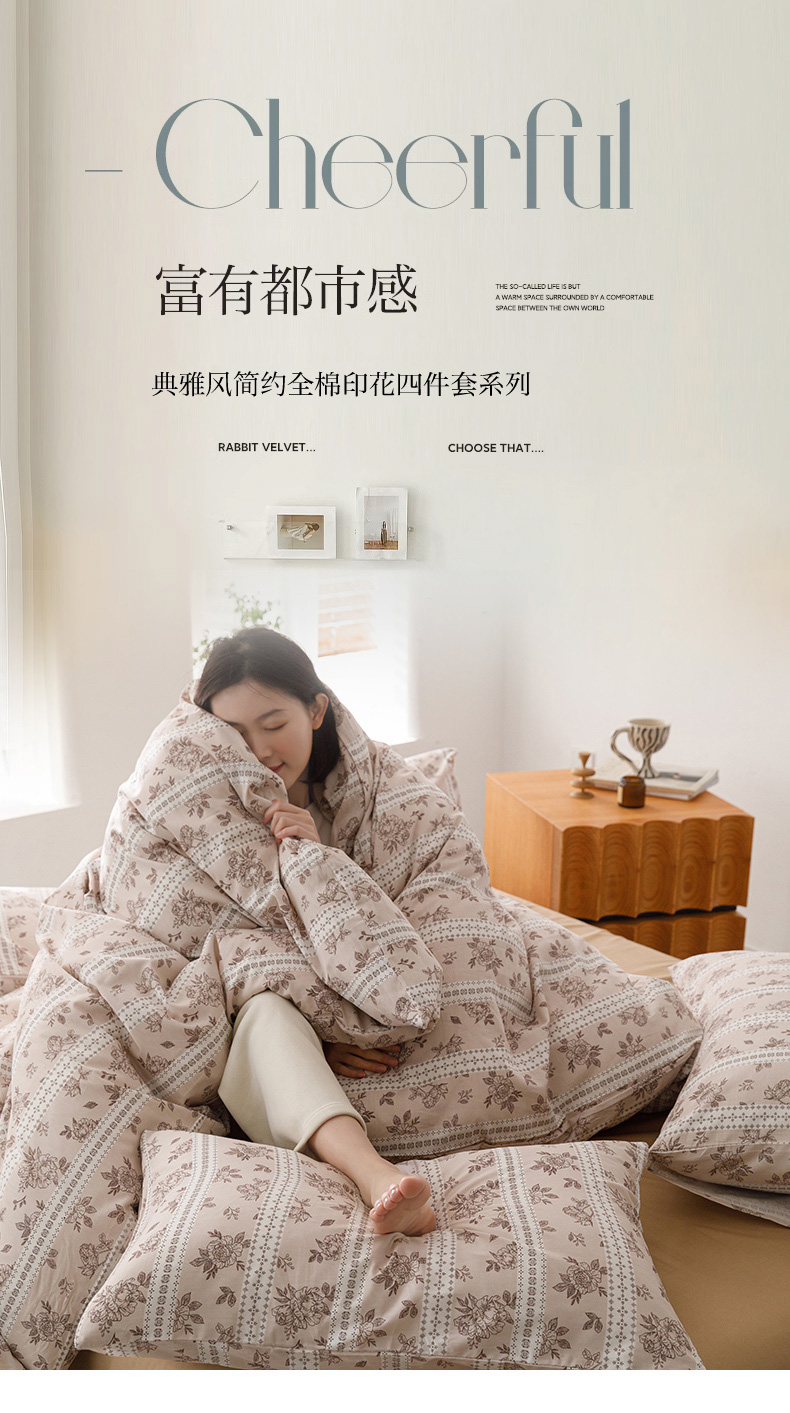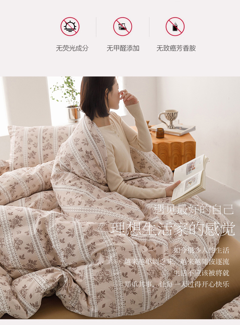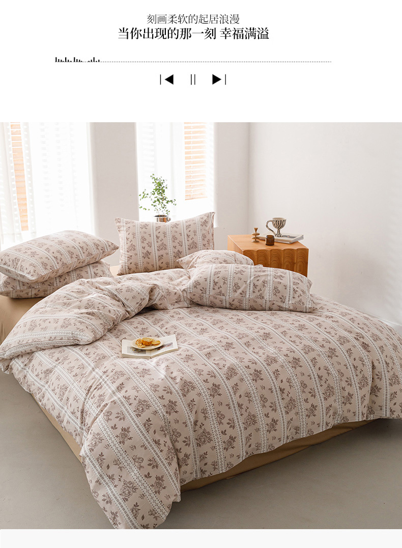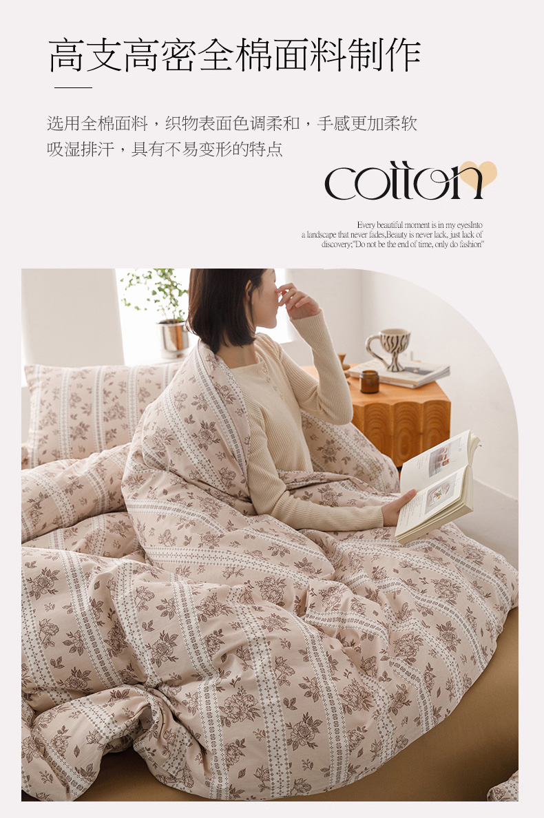 商品名称:倾慕家纺 2024新款典雅风全棉13370简约印花系列四件套 原野