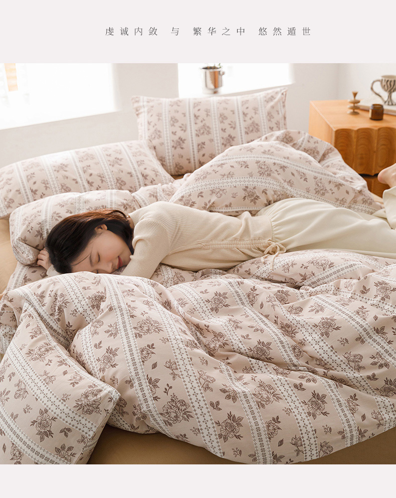倾慕家纺 2024新款典雅风全棉13370简约印花系列四件套 原野