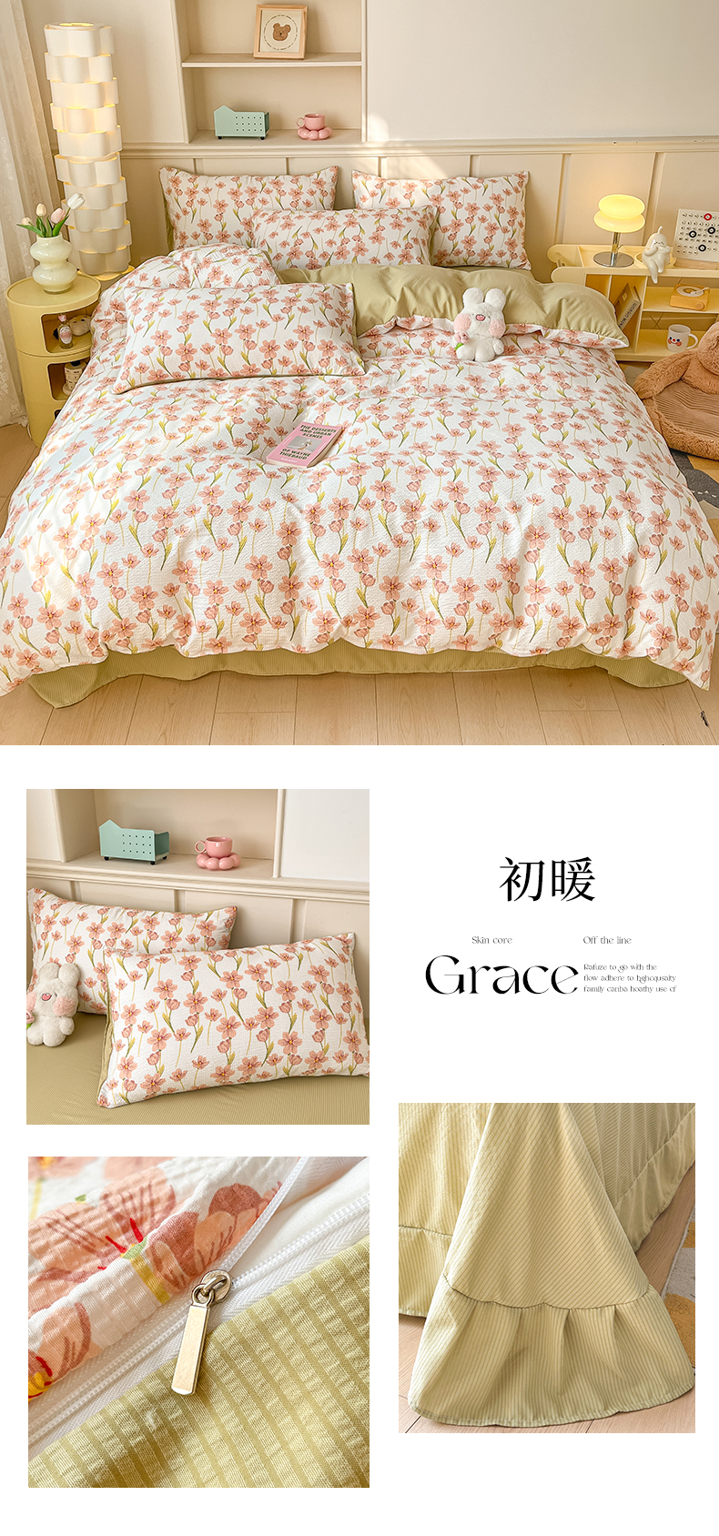 当前位置: 91家纺网 > 商品网购 > 床品套件 > 四件套 > 全棉普通四件套 > 梦之岛 2024新款A类母婴级泡泡棉皱皱纱碎花四件套 初暖