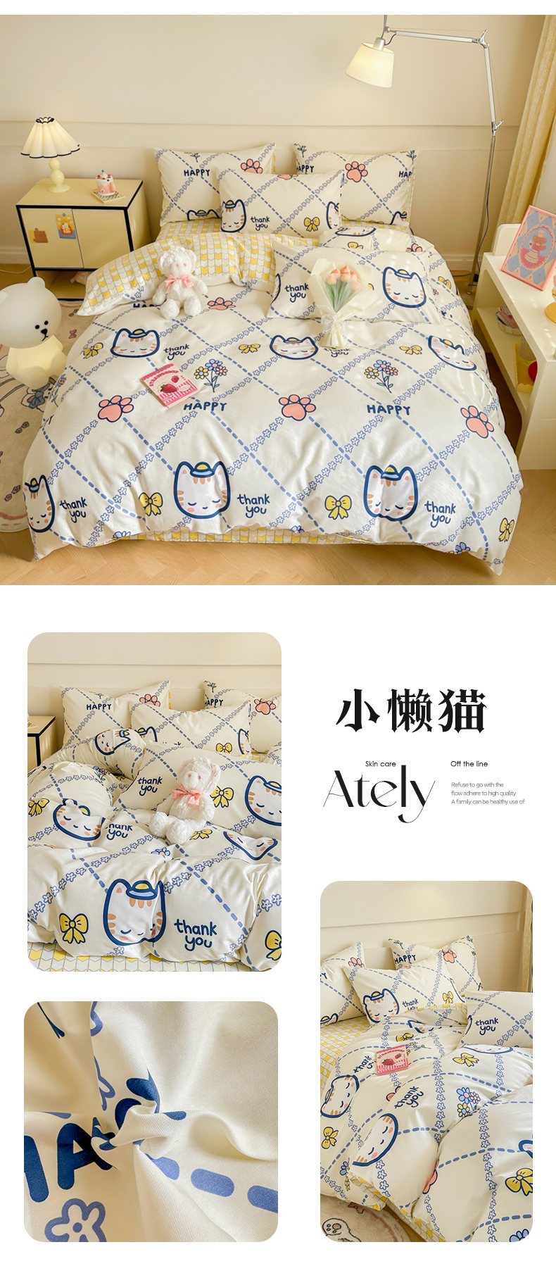 (总)呗旺鹿 2025新款卡通棉+牛奶绒四件套系列,QQ乐园,多彩笑脸,小萌鸭,蘑菇狗,奶油小熊,曲奇小熊