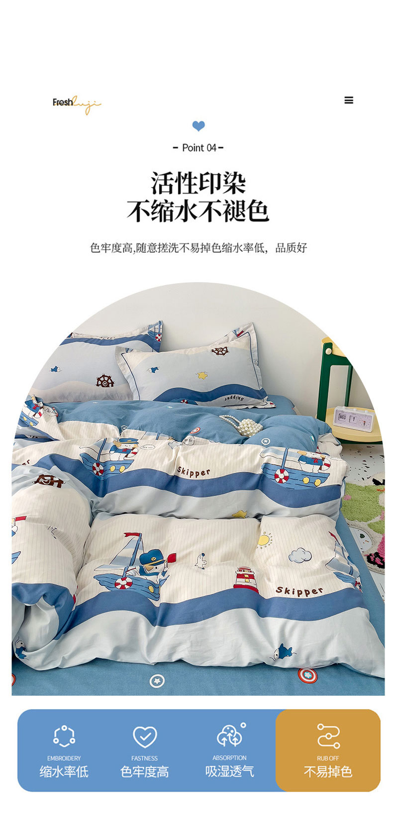 商品名称:(总)乐童 2024新款直播爆款13070纯棉印花吊边款一字绣四件套