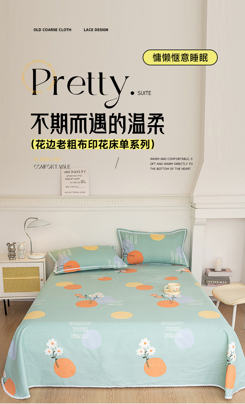 首爱家纺 2025新款花边老粗布印花床单系列套件 简爱