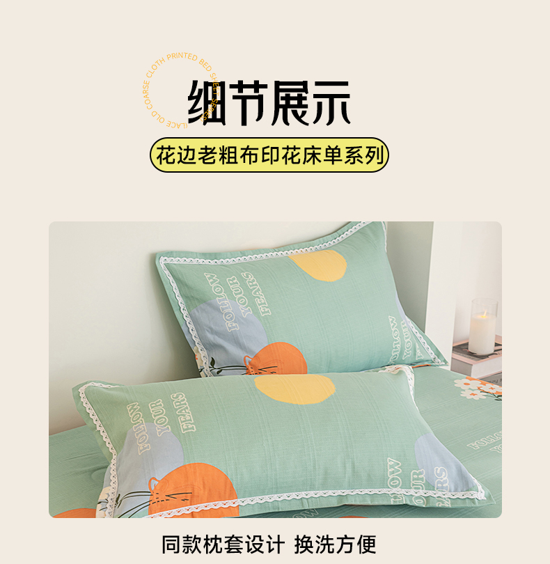 商品名称:首爱家纺 2025新款花边老粗布印花床单系列套件 简爱