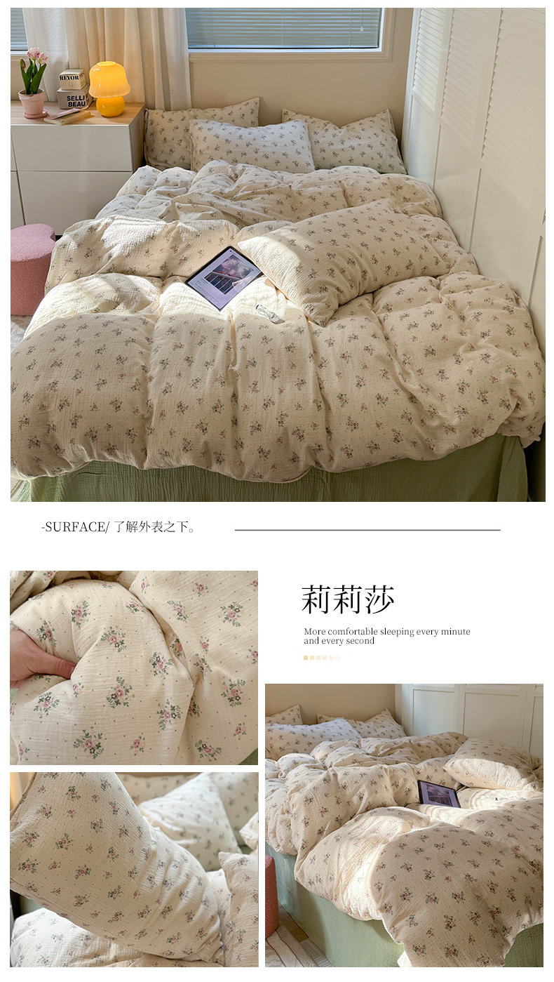 商品名称:萝莉家纺 2025新款全棉双层皱皱纱四件套 莉莉莎