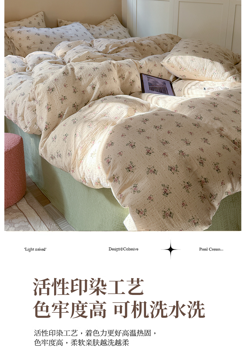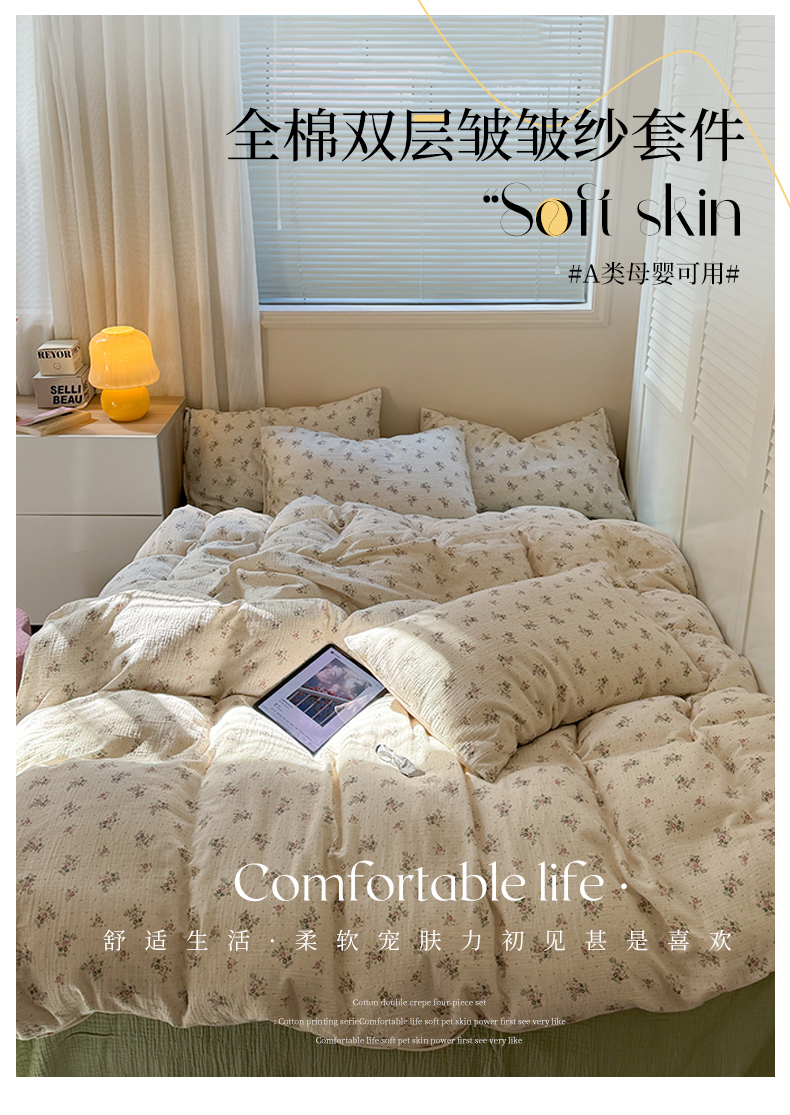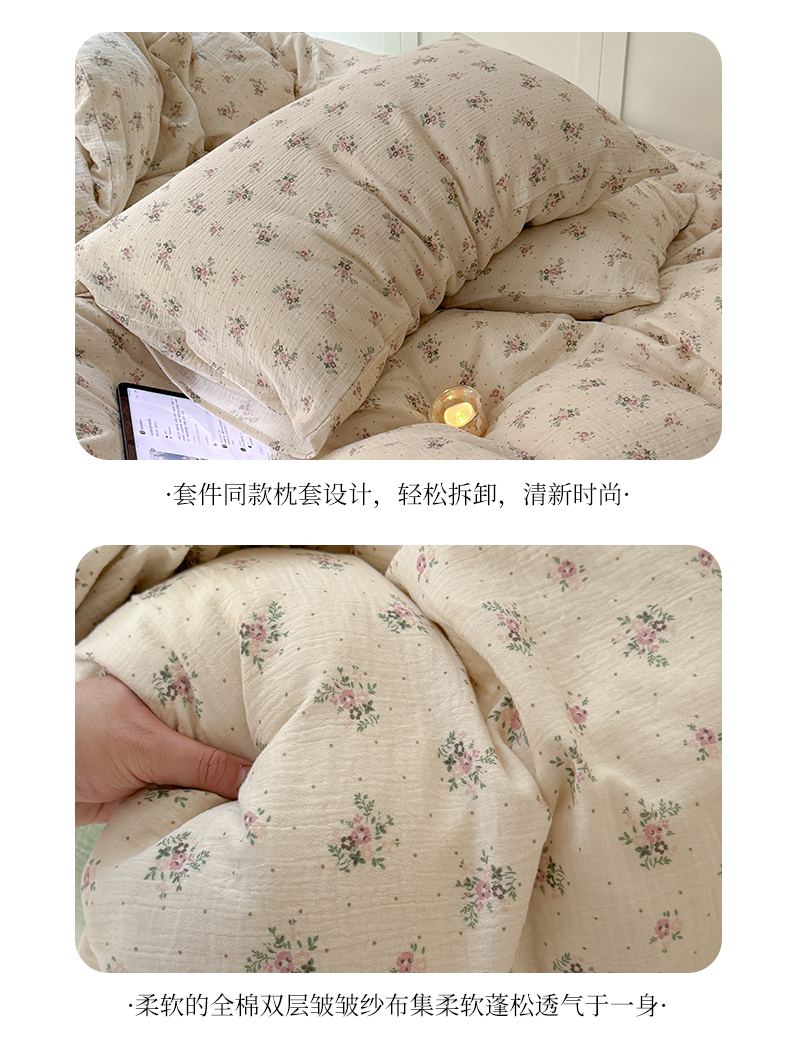 萝莉家纺 2025新款全棉双层皱皱纱四件套 莉莉莎