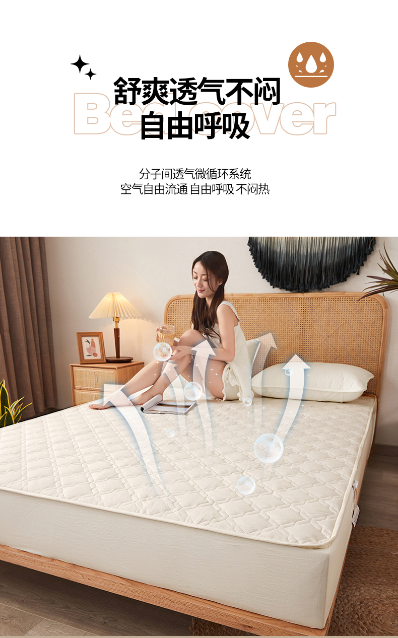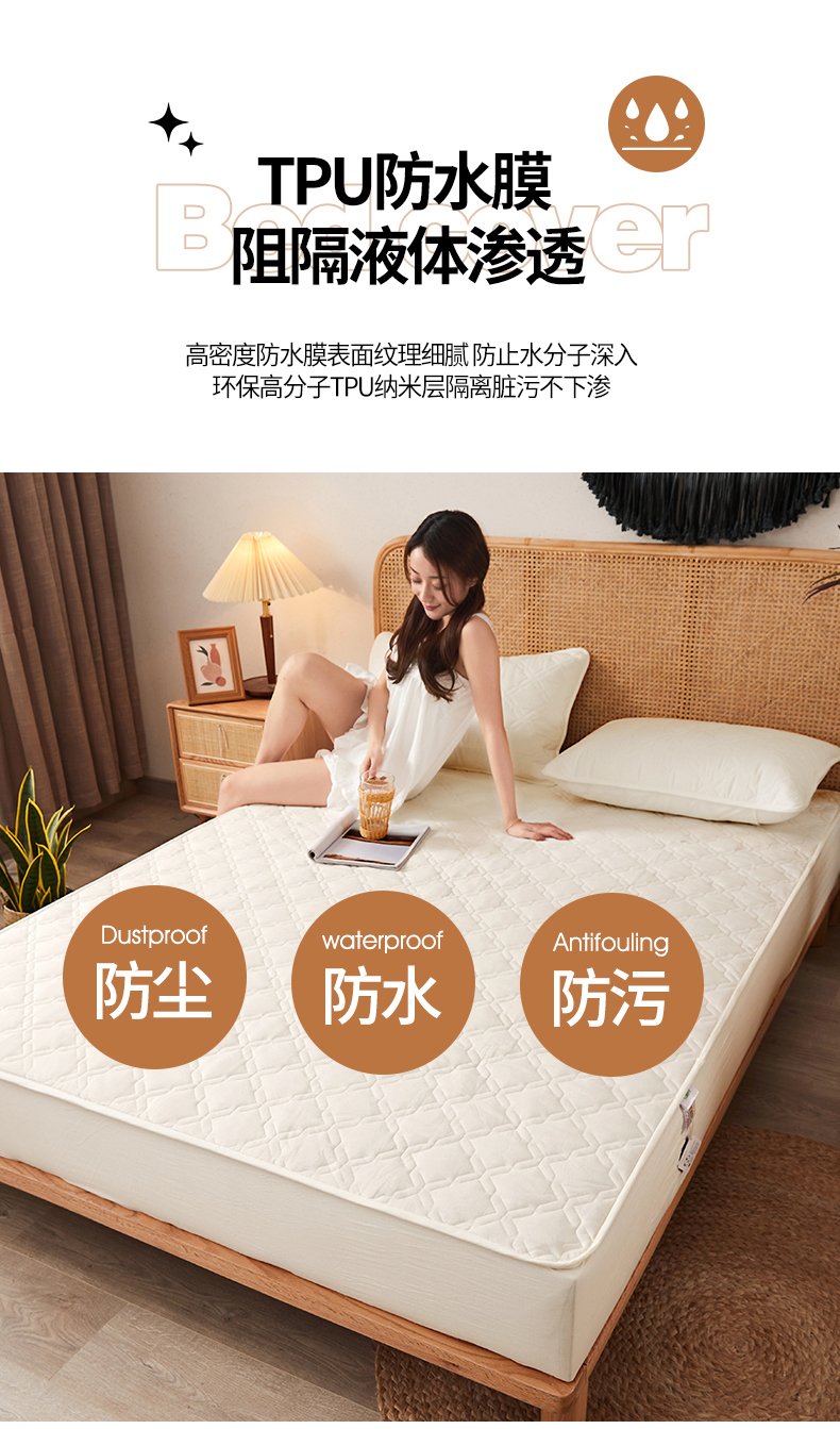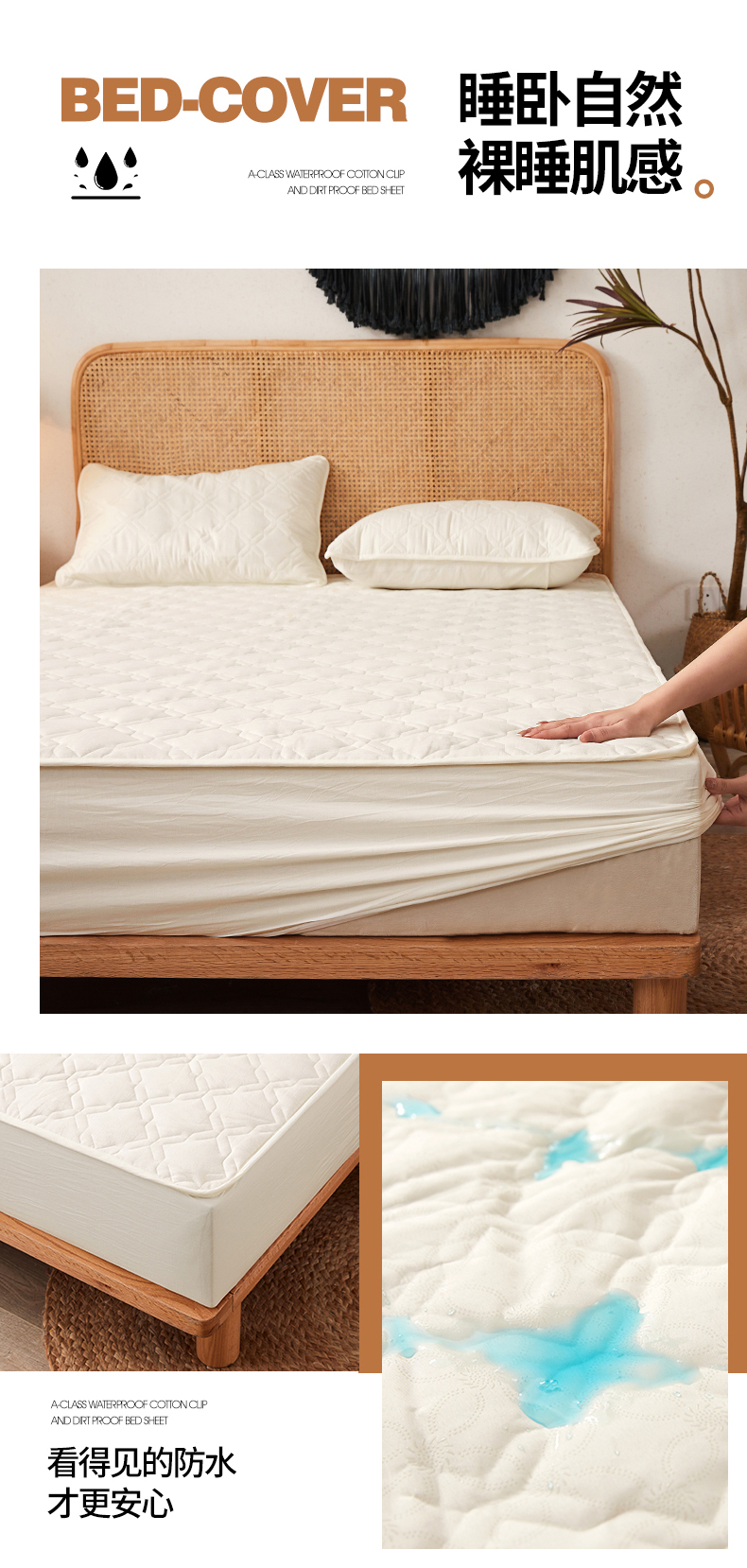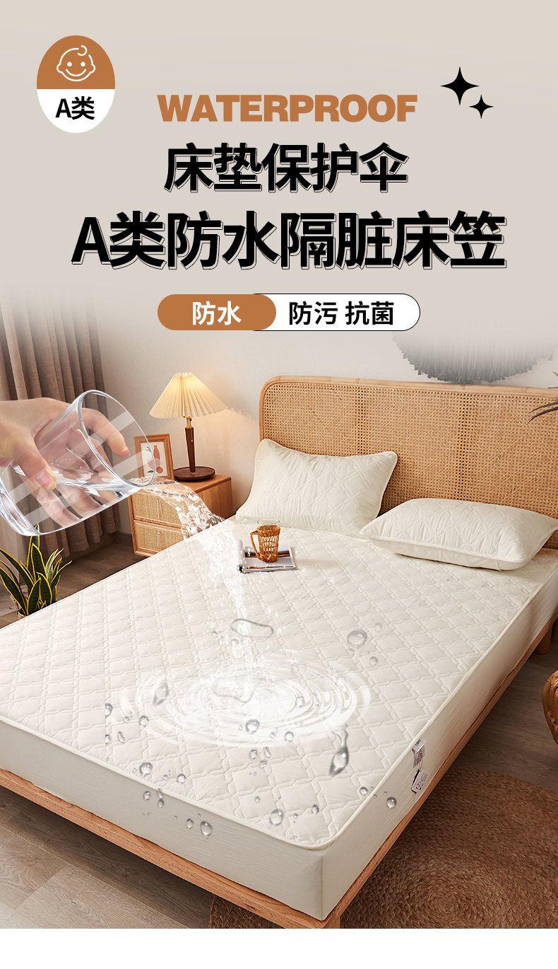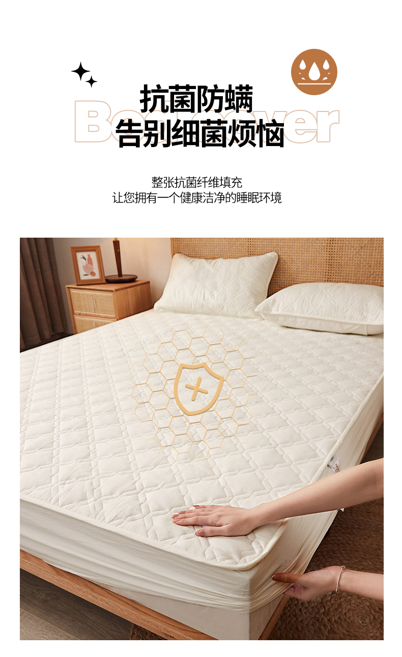 • 91家纺网 家纺一手货源 找家纺 3C 2024新款抗菌防螨透气防水夹棉床笠 珍珠白