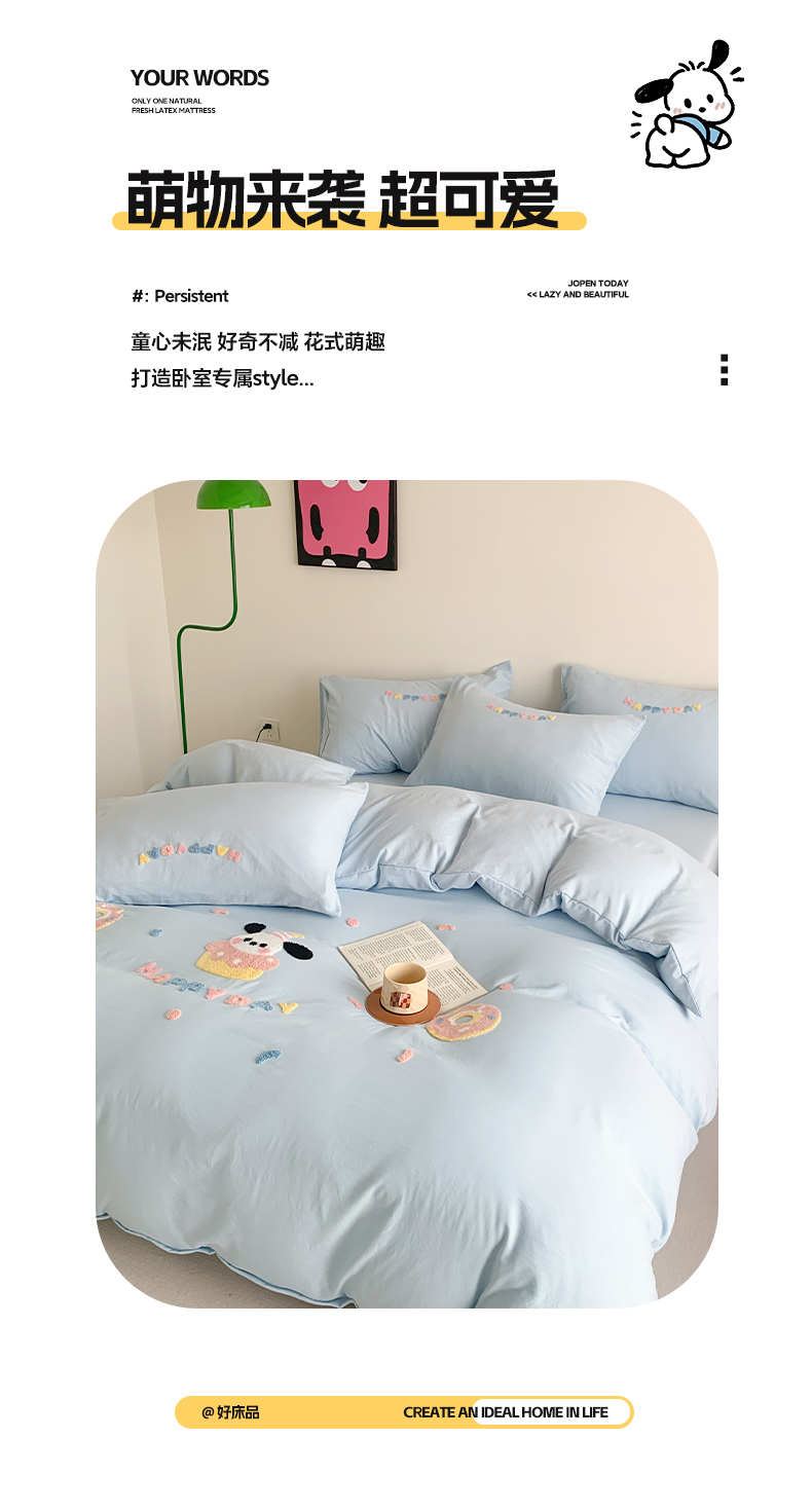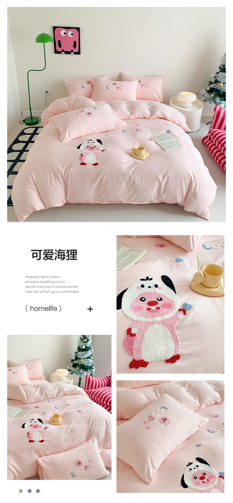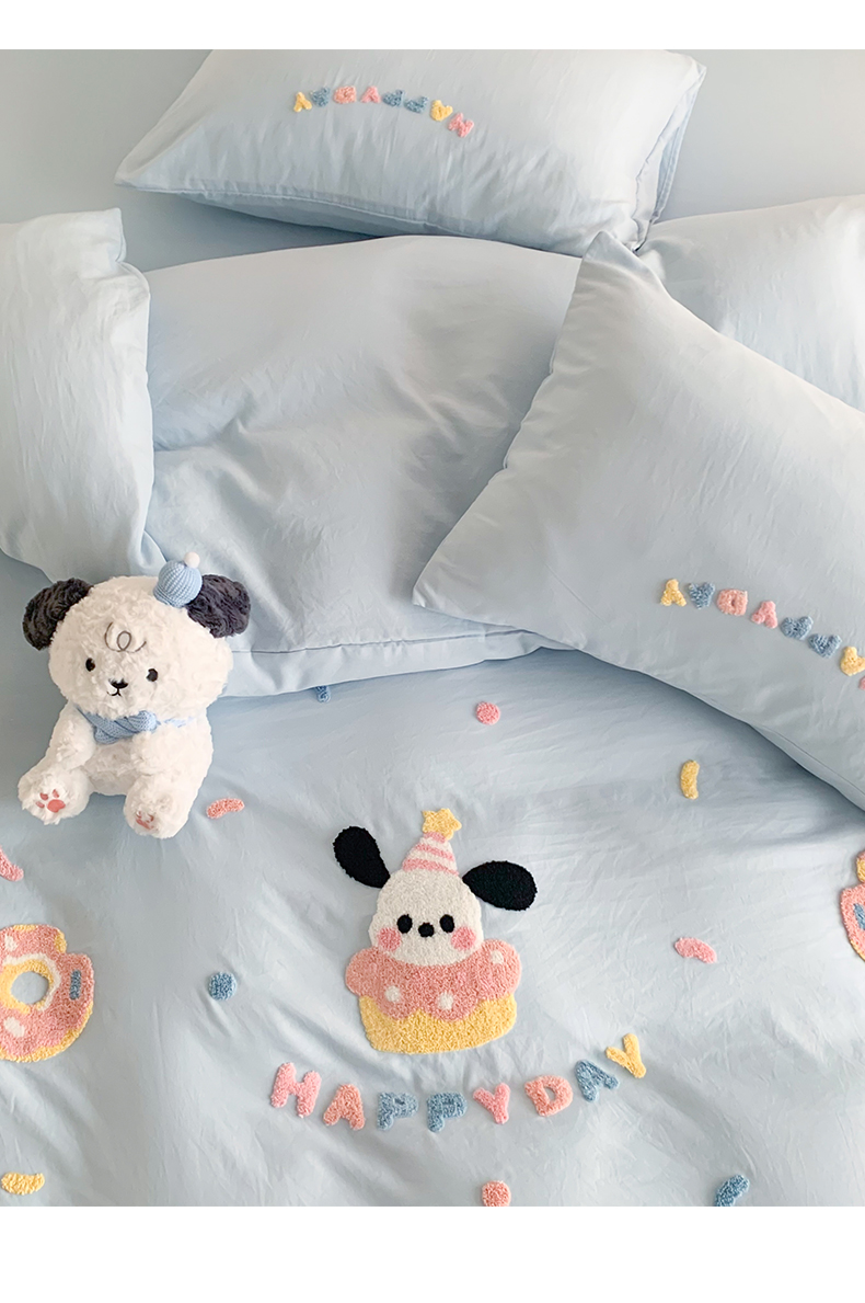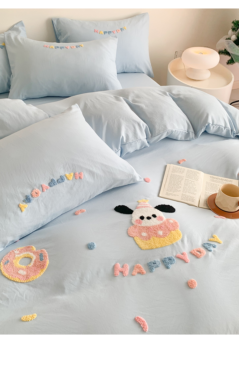 当前位置: 91家纺网 > 商品网购 > 床品套件 > 四件套 > 其它四件套 > 凯儿2024新款水洗棉卡通毛巾绣四件套-专版花型 甜圈狗狗蓝
