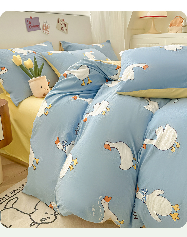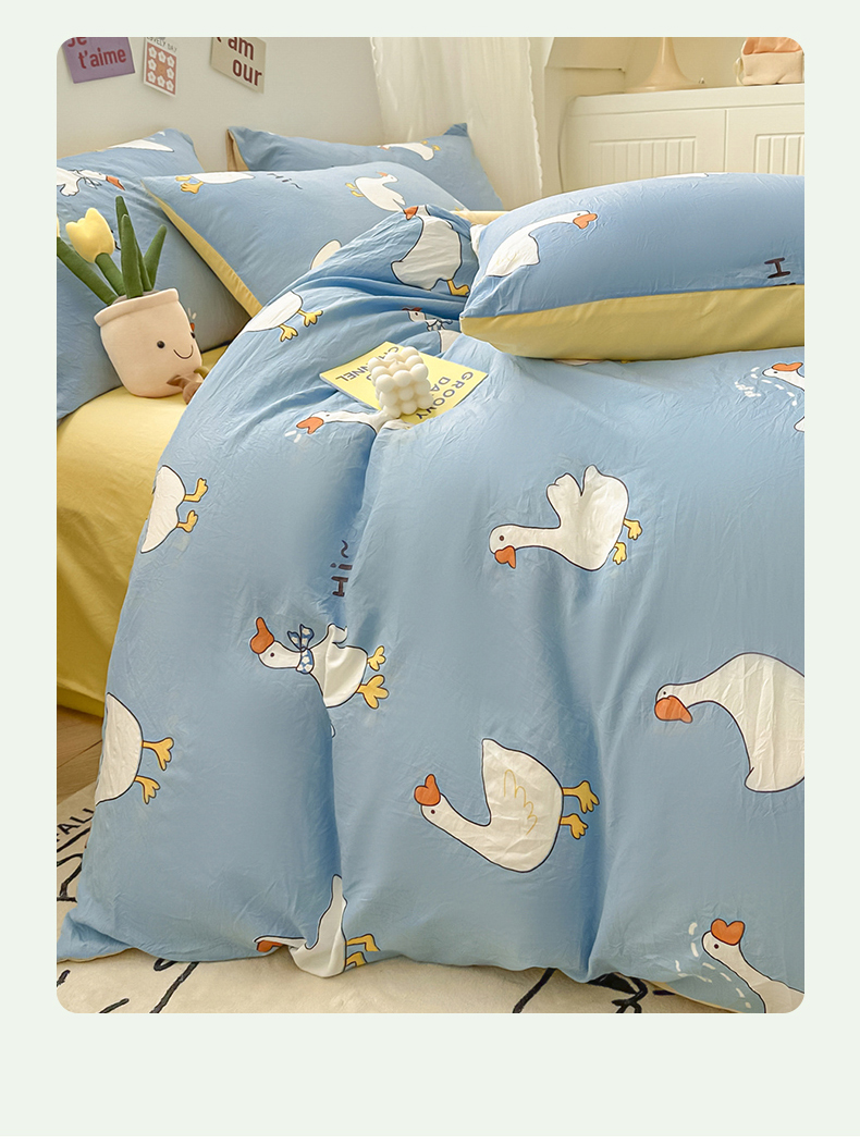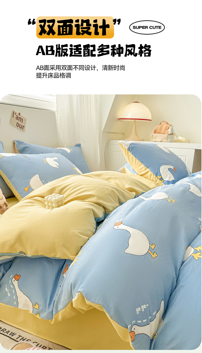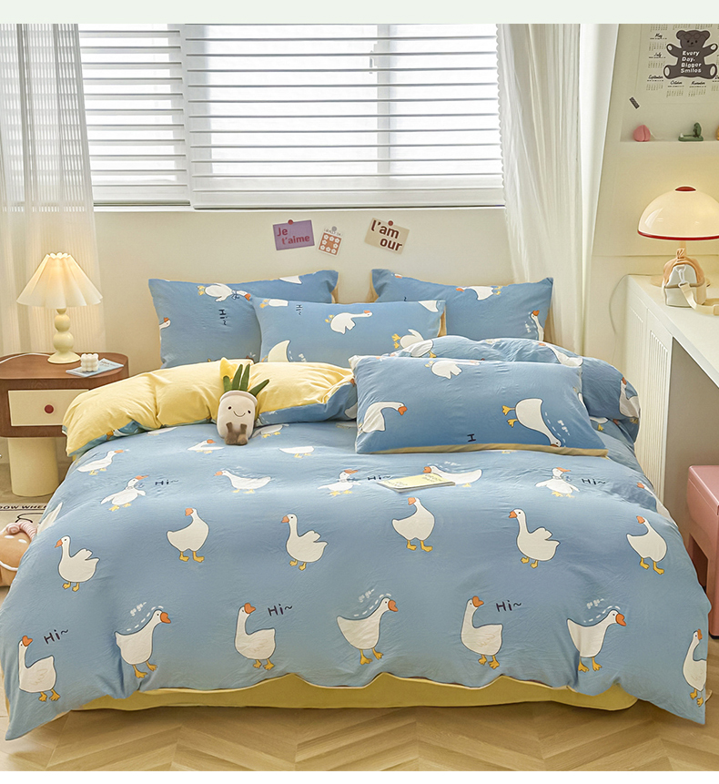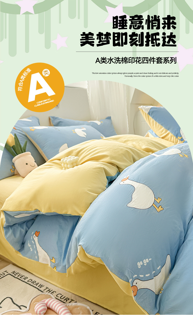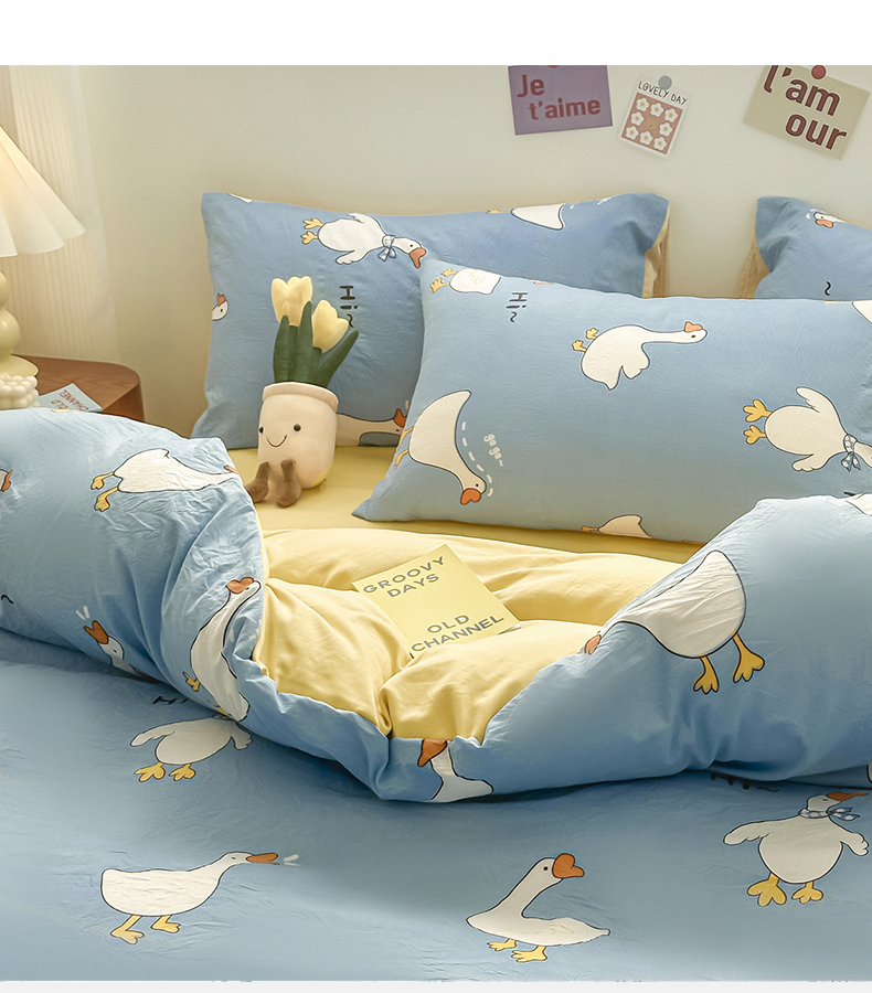 当前位置: 91家纺网 > 商品网购 > 床品套件 > 四件套 > 其它四件套 > 古吉梦 2024新款水洗棉小清新印花四件套 水洗棉-开心鹅