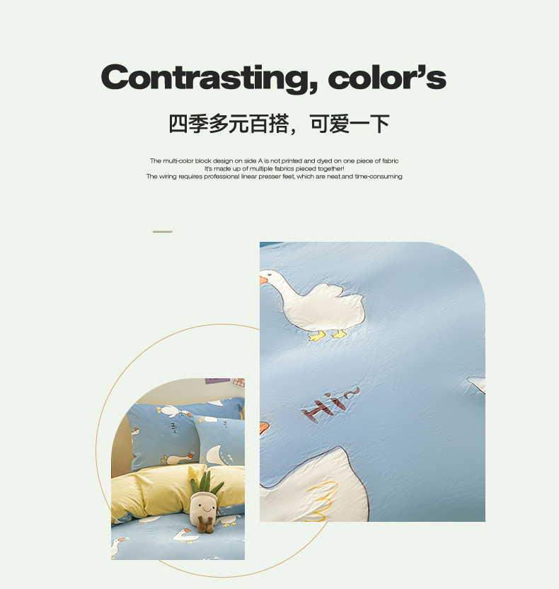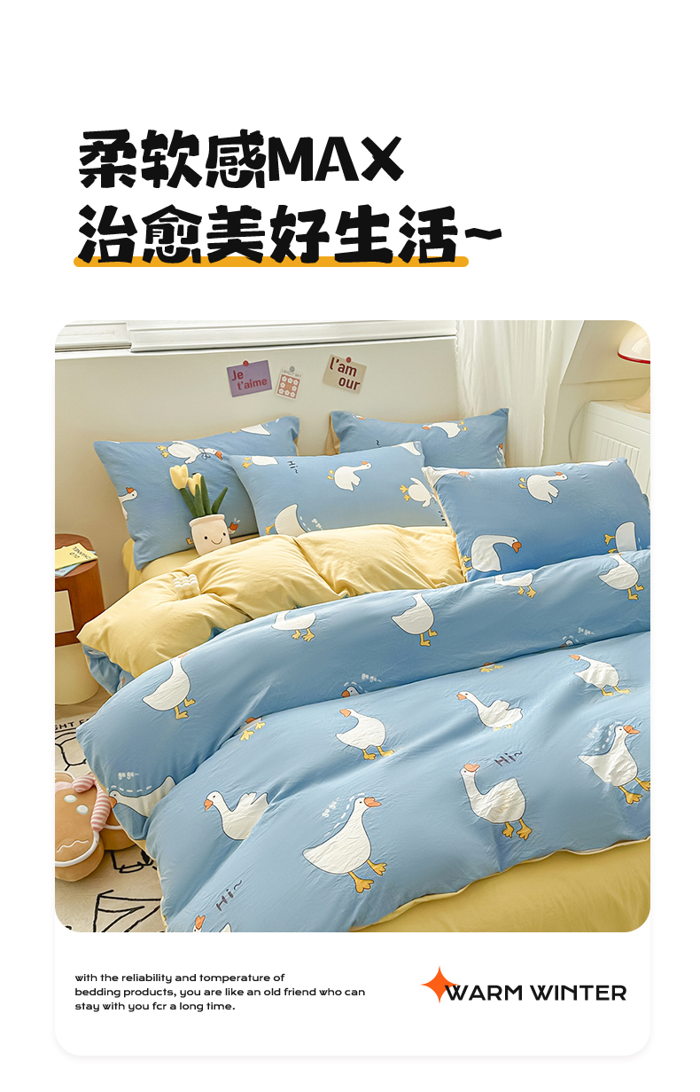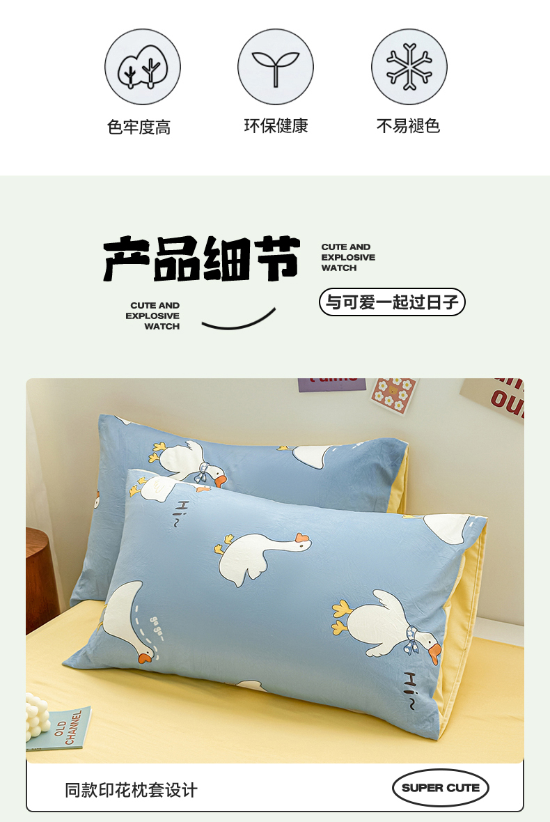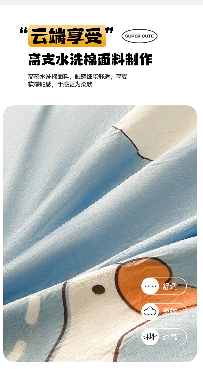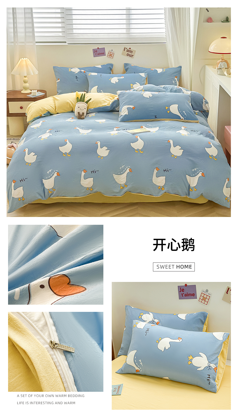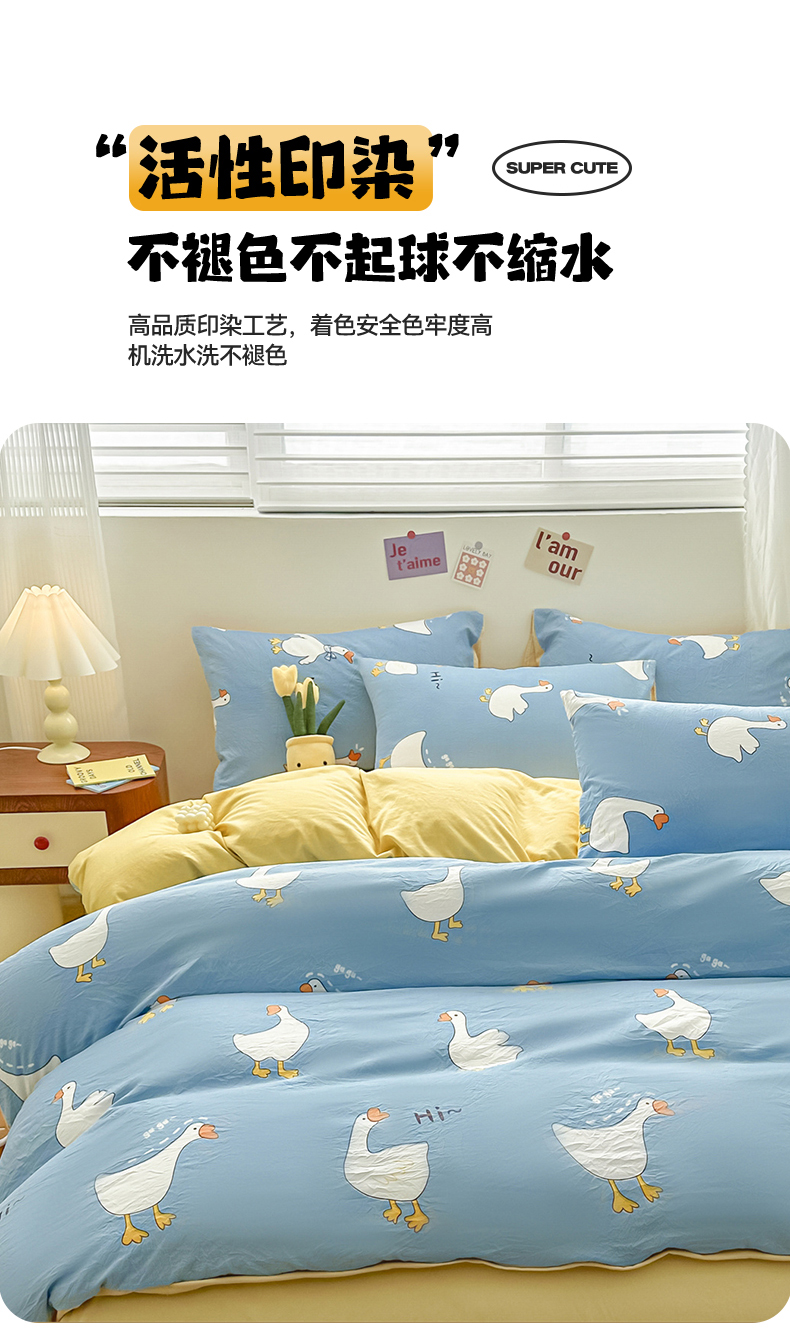 当前位置: 91家纺网 > 商品网购 > 床品套件 > 四件套 > 其它四件套 > 古吉梦 2024新款水洗棉小清新印花四件套 水洗棉-开心鹅