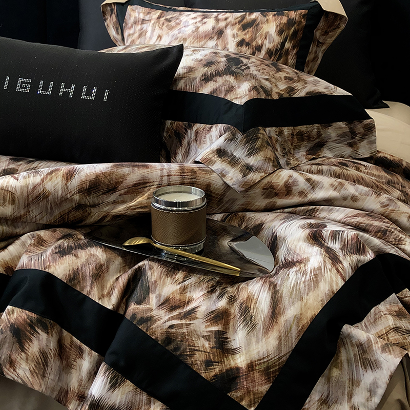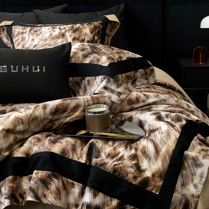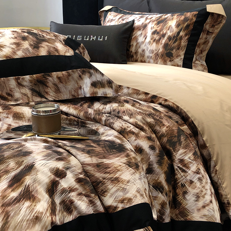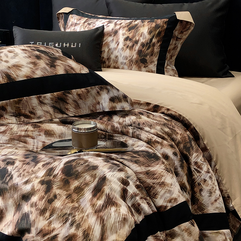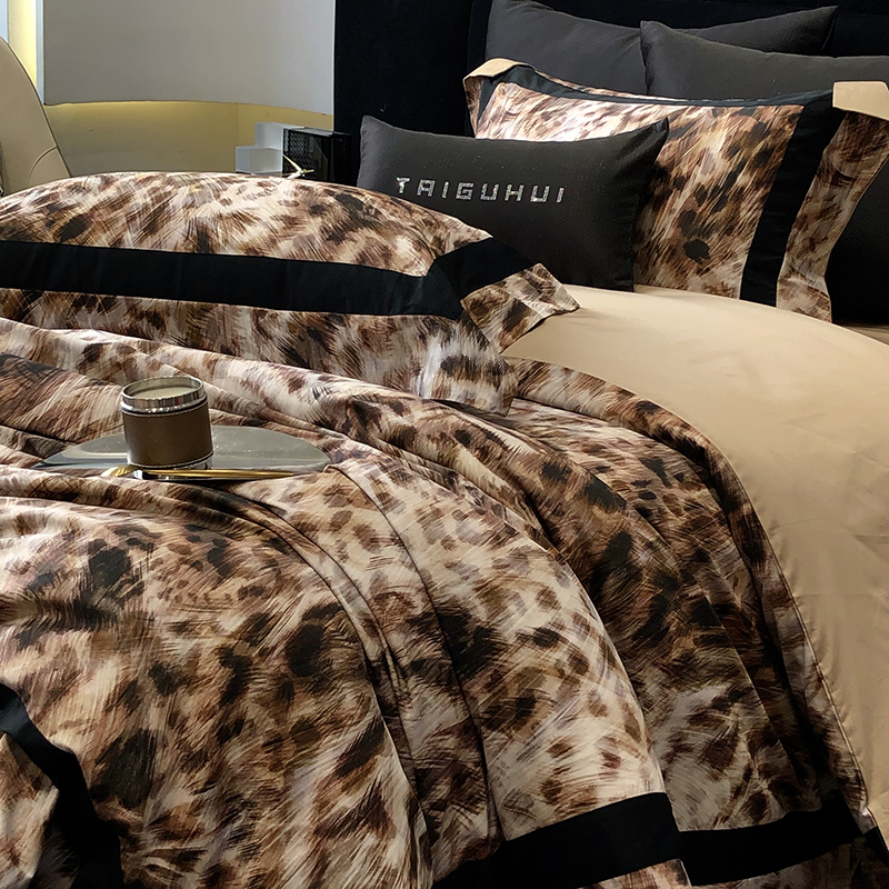 太古汇 2024新款长绒棉专版数码印花双拼四件套--豹纹 布莱恩-卡其
