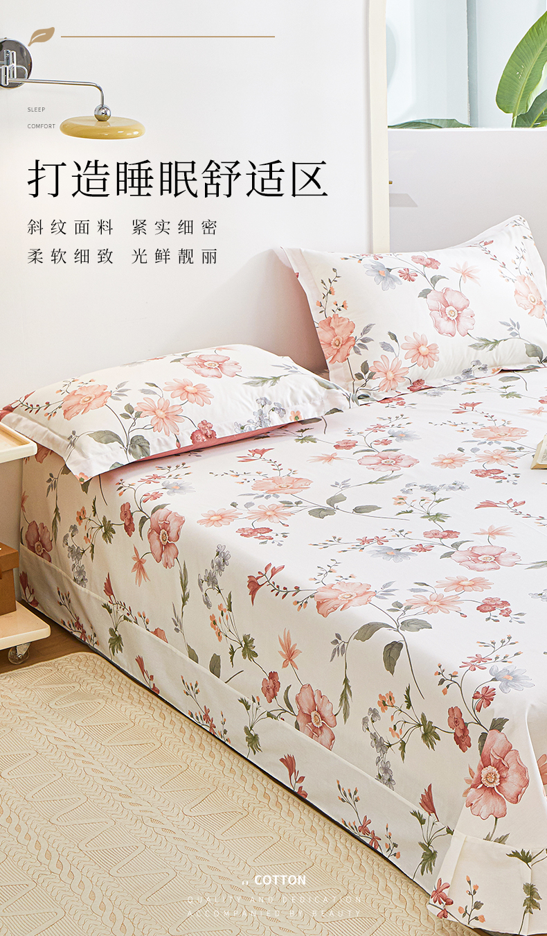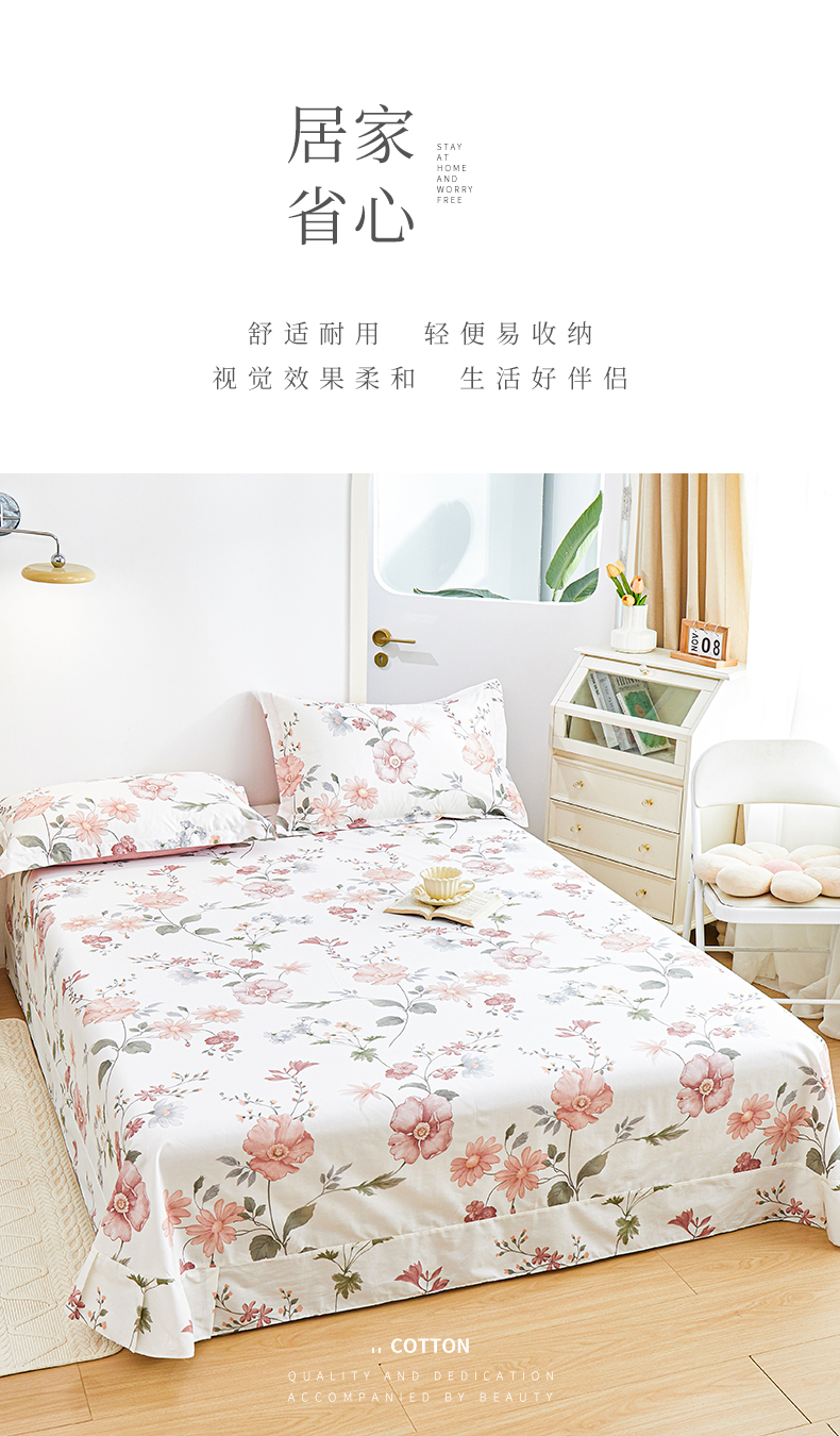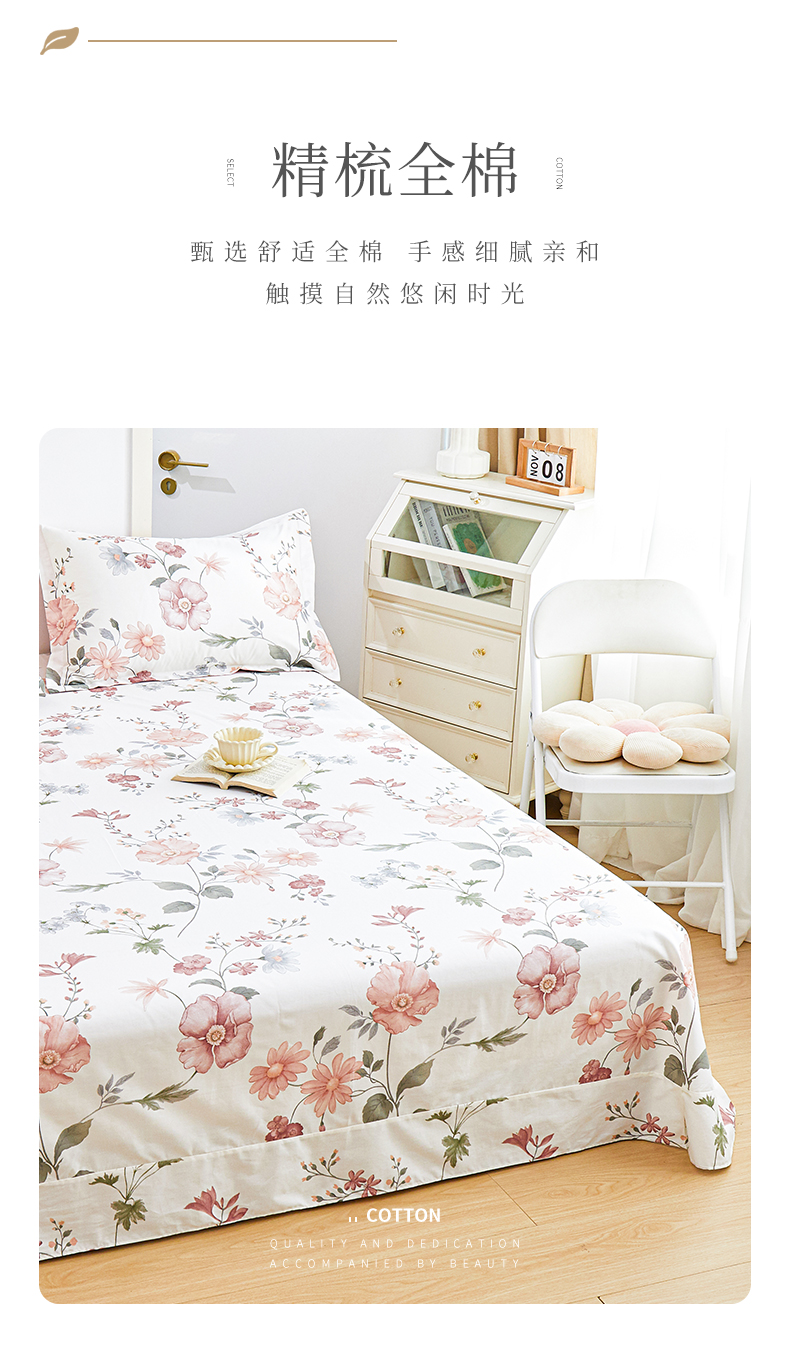 商品名称:元元被芯 2024新款小清新全棉套件单品-单床单 莫兰朵-粉
