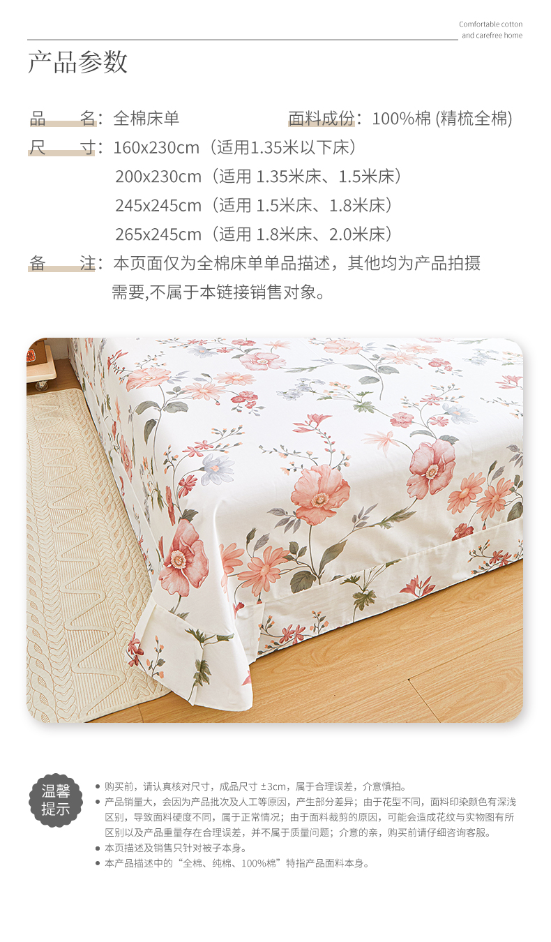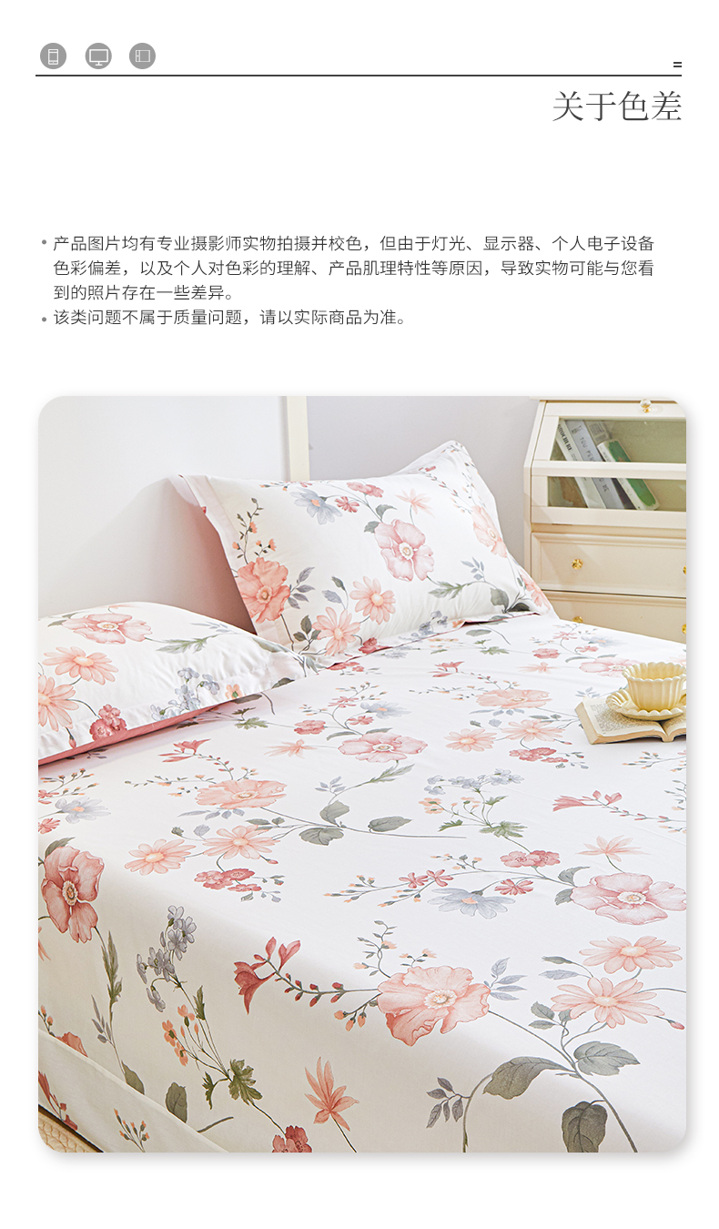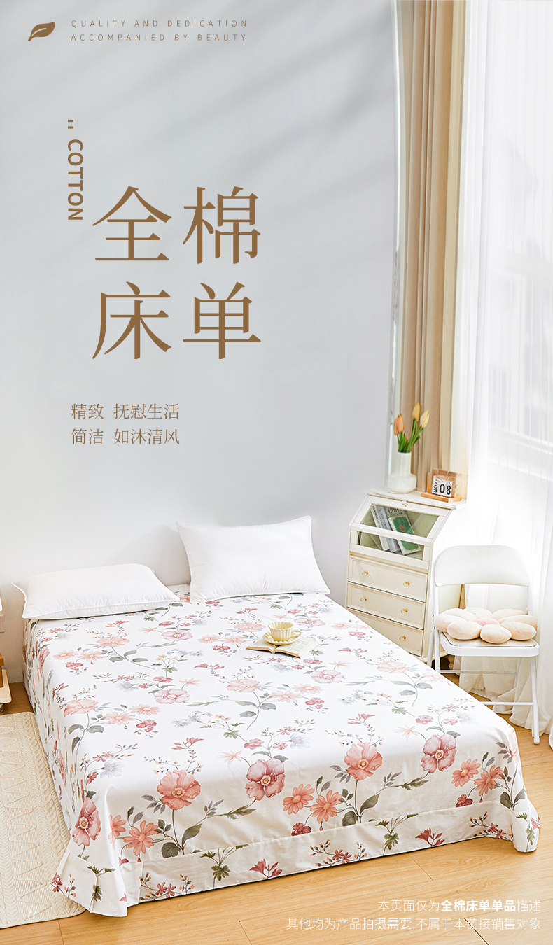 商品名称:元元被芯 2024新款小清新全棉套件单品-单床单 莫兰朵-粉