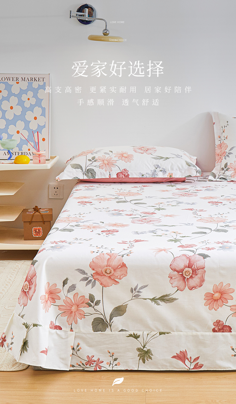 元元被芯 2024新款小清新全棉套件单品-单床单 莫兰朵-粉