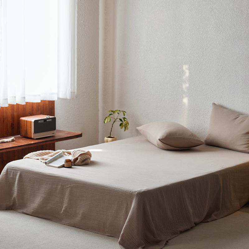 简纯主义 2025新款全棉有机雾感纱双层皱皱纱系列单床单 海盐奶咖