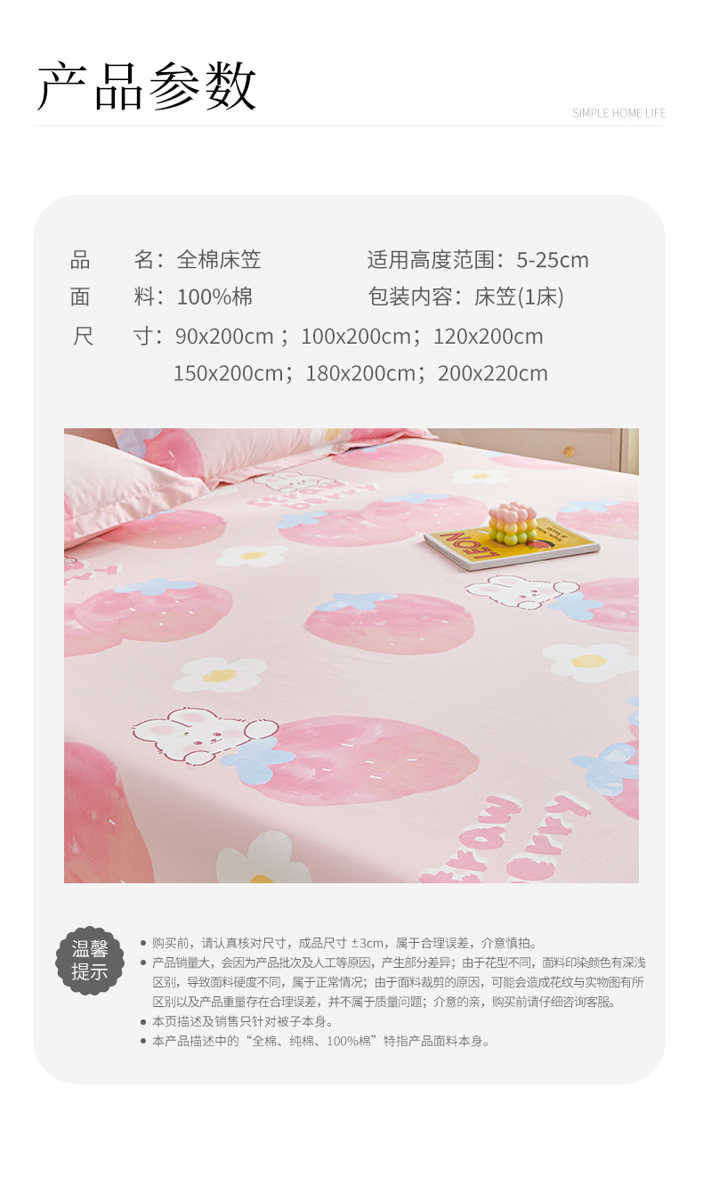 元元被芯 2024新款小清新全棉套件单品-单床笠 哈尼-粉