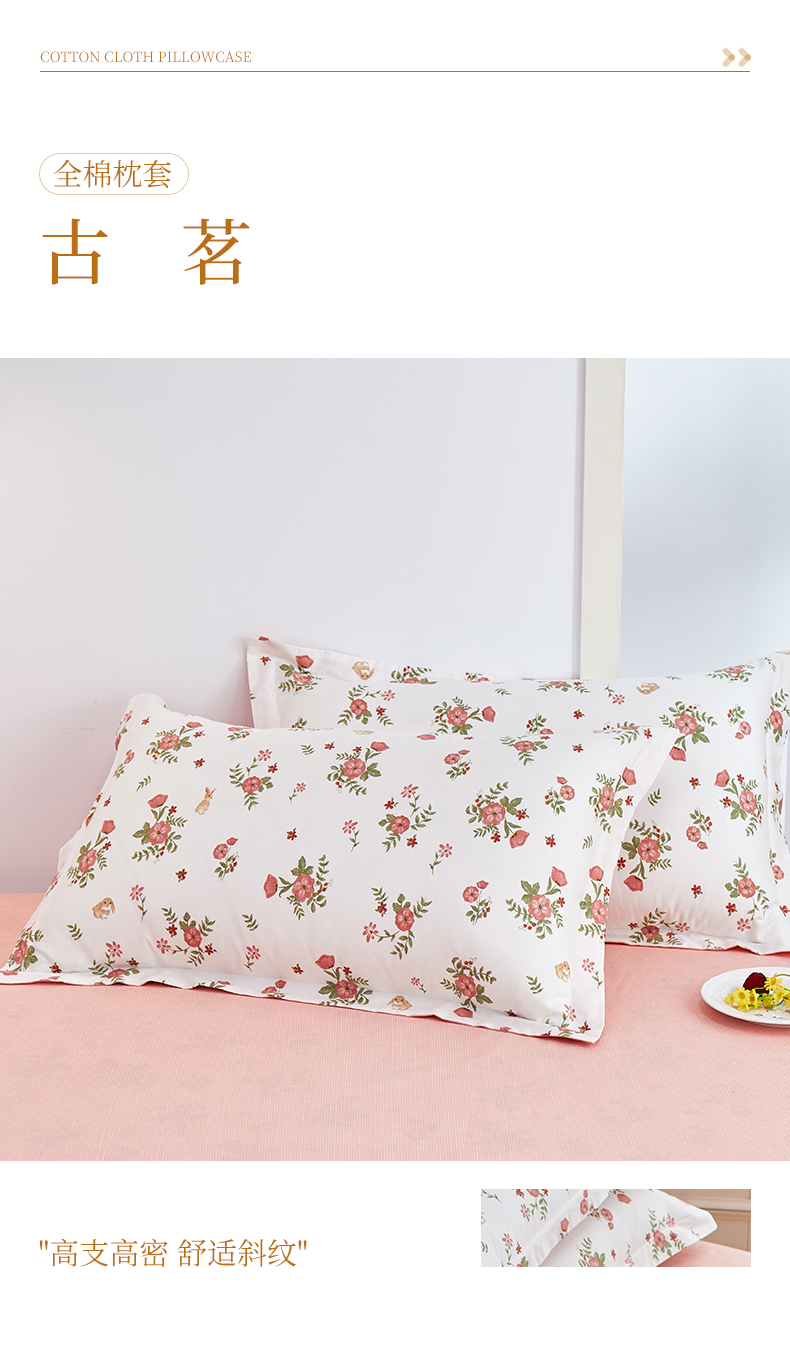 商品名称:元元被芯 2024新款小清新全棉套件单品-单枕套 古茗