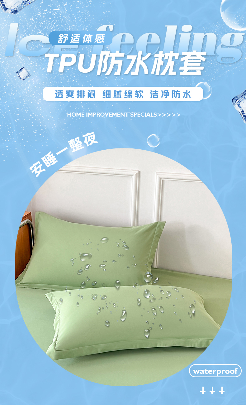 • 91家纺网 家纺一手货源 找家纺 福来临家纺 2025TPU防水枕套 TPU防水枕套-果绿