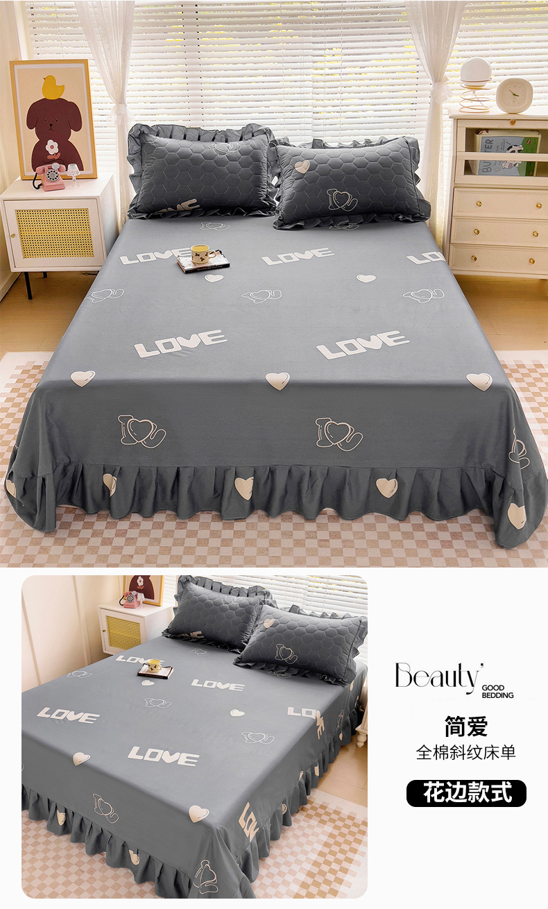 商品名称:情煊家纺 2024新款全棉斜纹花边床单系列-印花款 简爱