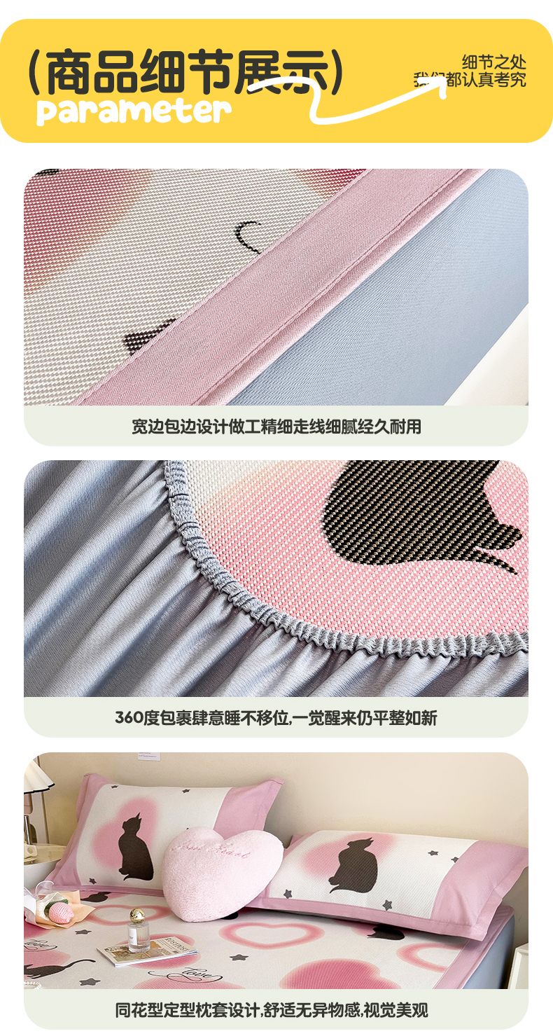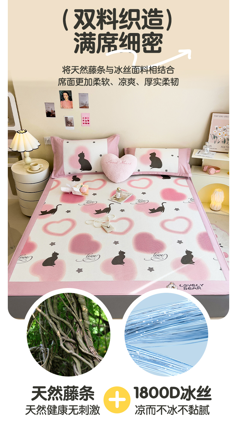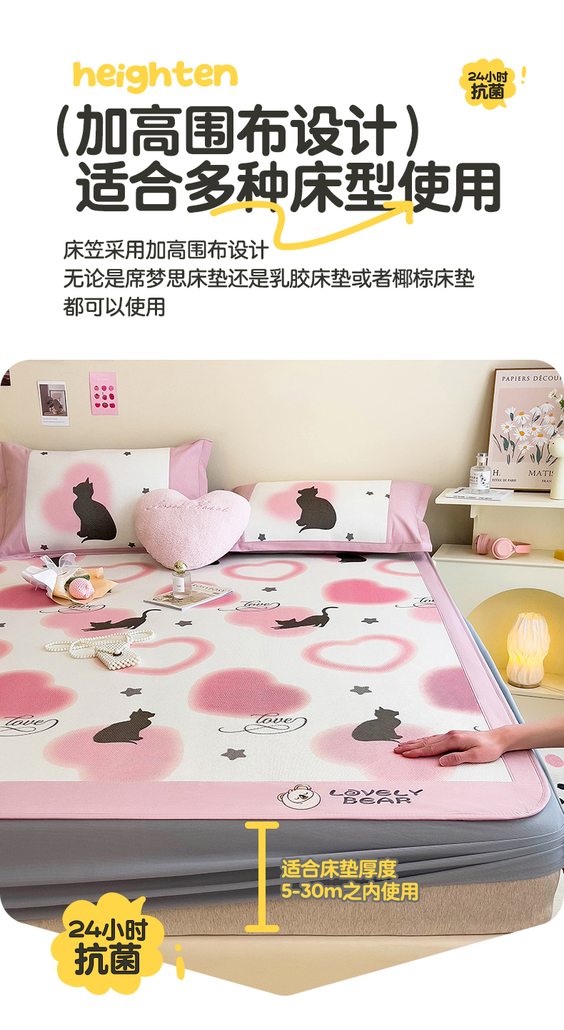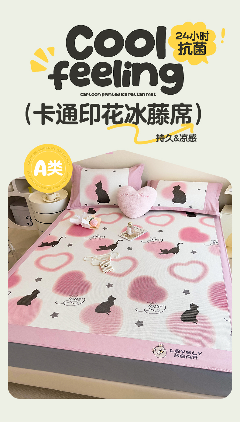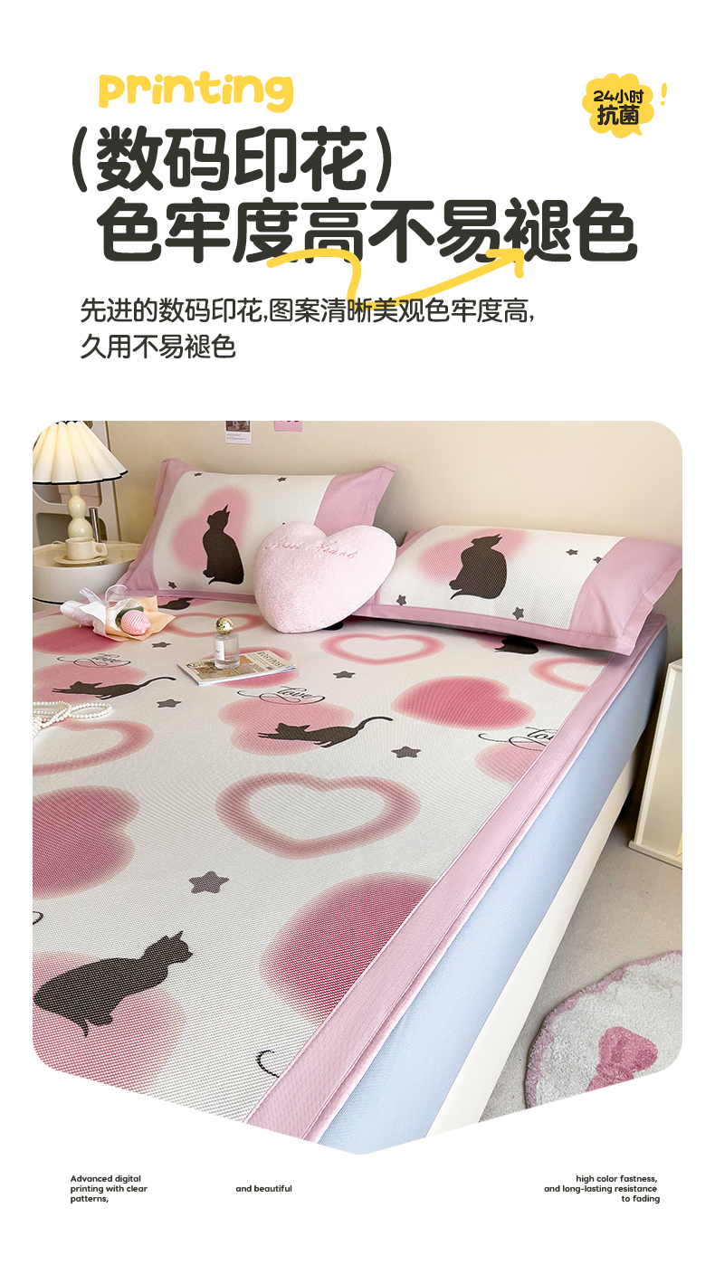 当前位置: 91家纺网 > 商品网购 > 床上用品 > 凉席 > 其他凉席 > 全季家居 2024新款A类抗菌数码印花冰藤席三件套 床笠款-魅粉小猫