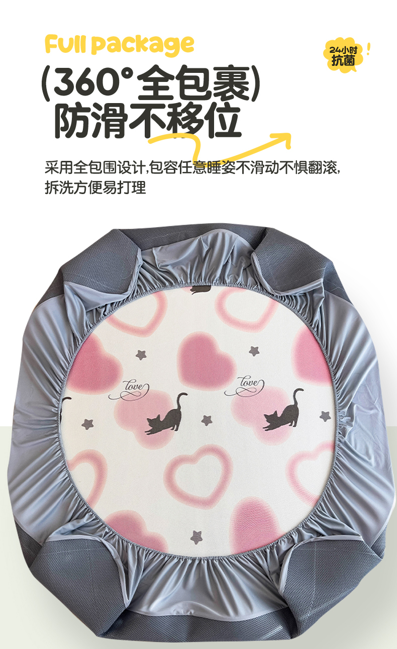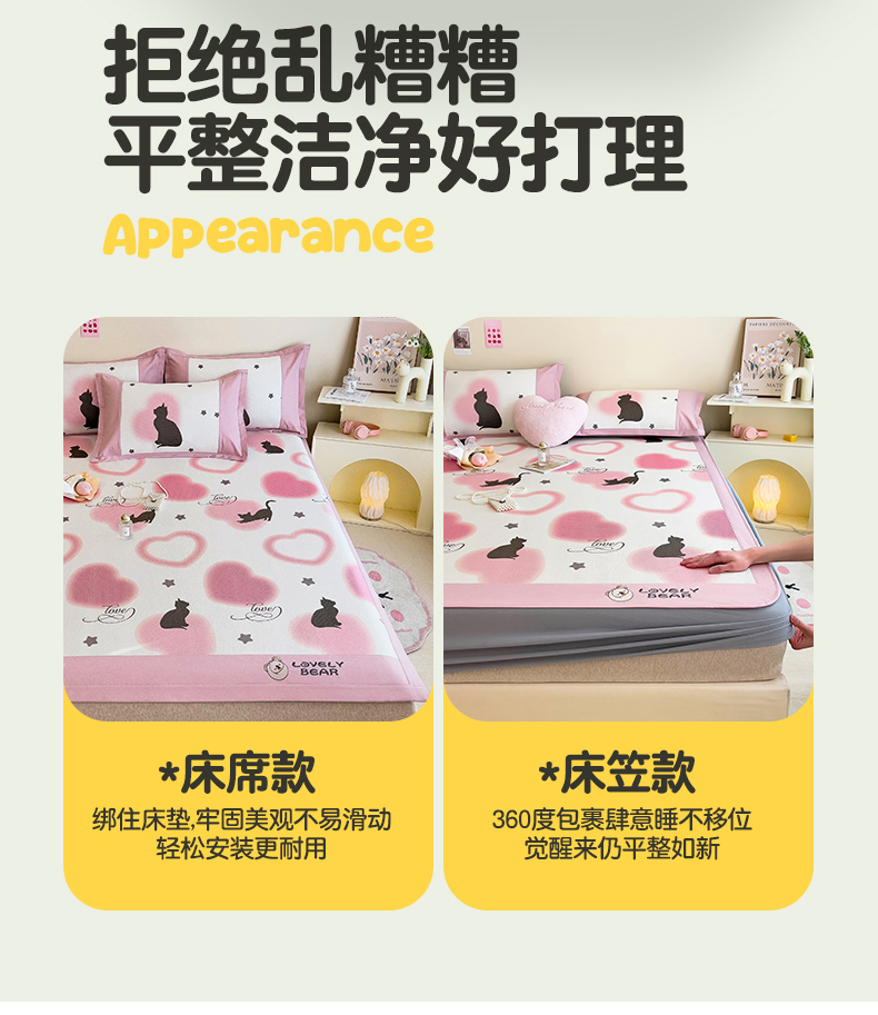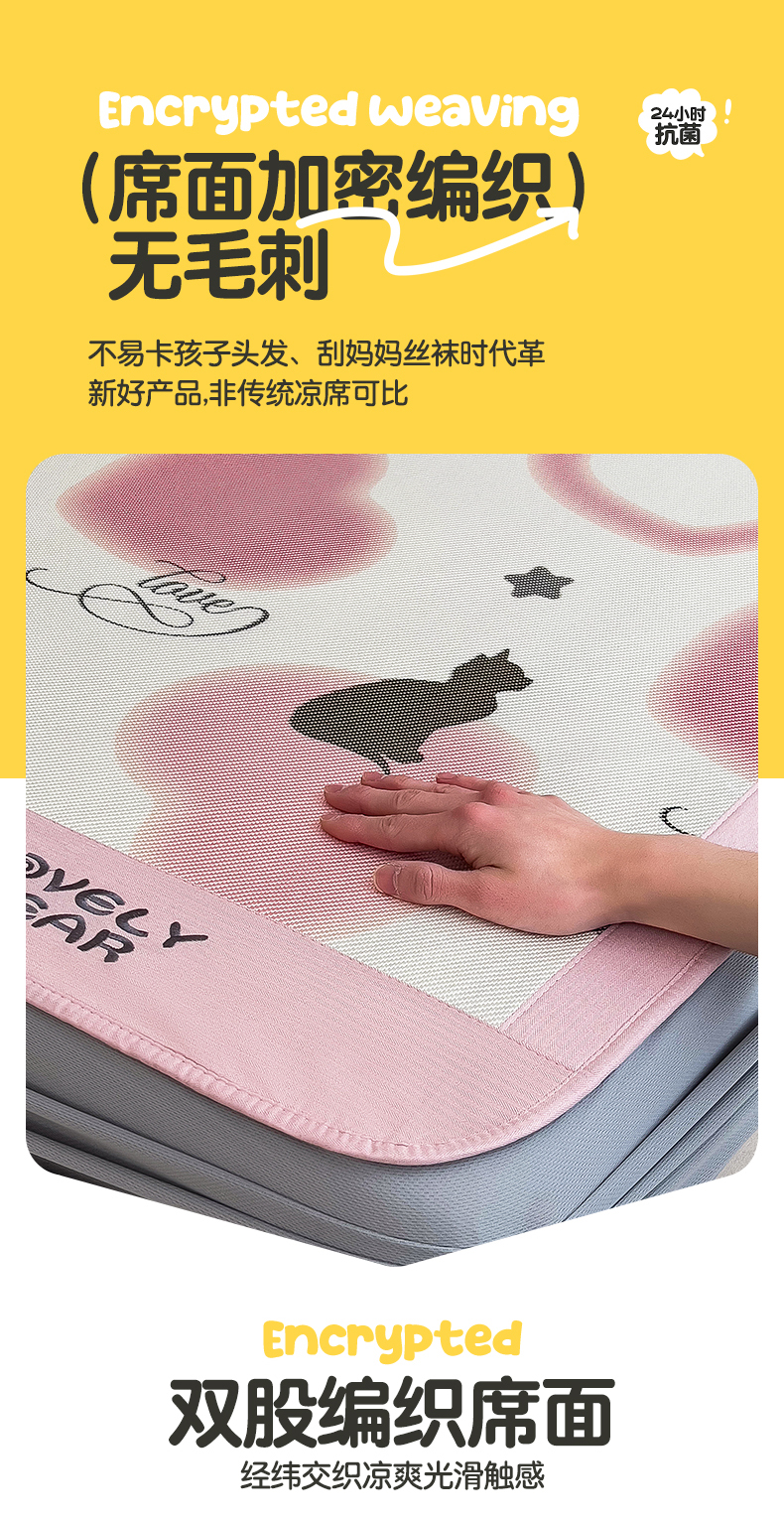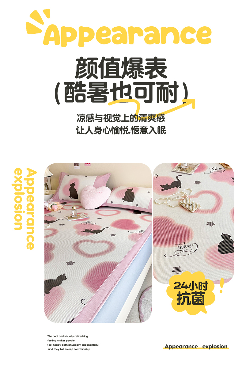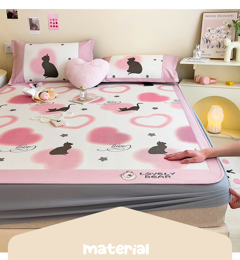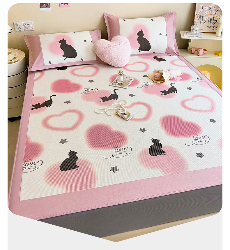 当前位置: 91家纺网 > 商品网购 > 床上用品 > 凉席 > 其他凉席 > 全季家居 2024新款A类抗菌数码印花冰藤席三件套 床笠款-魅粉小猫