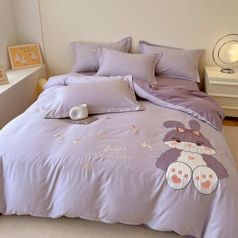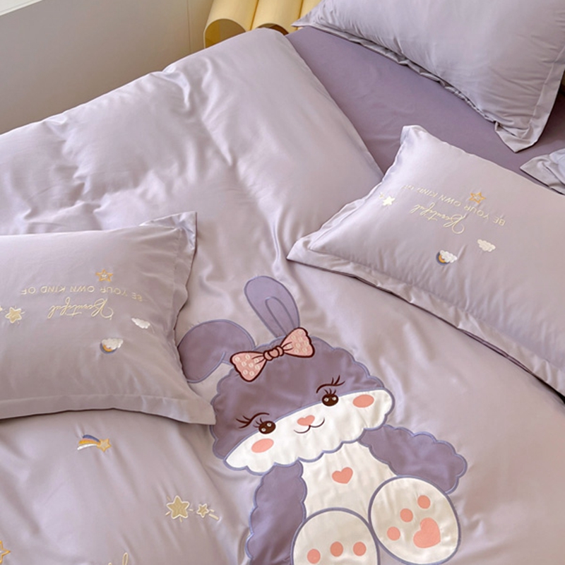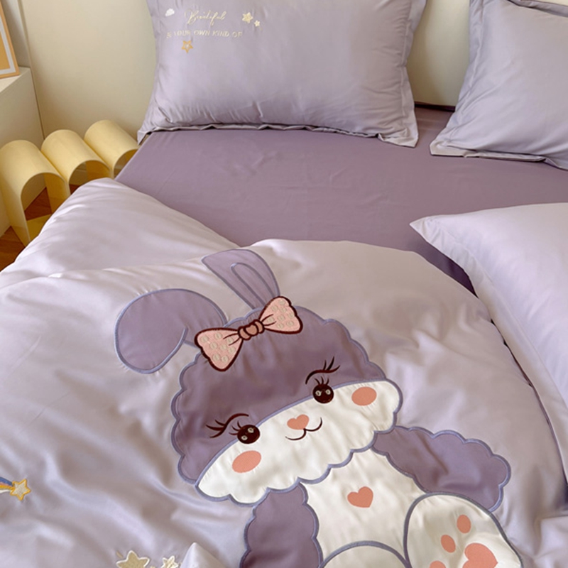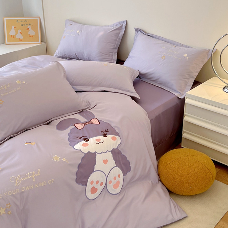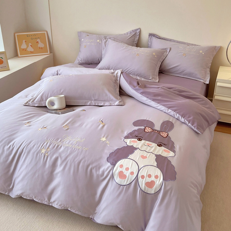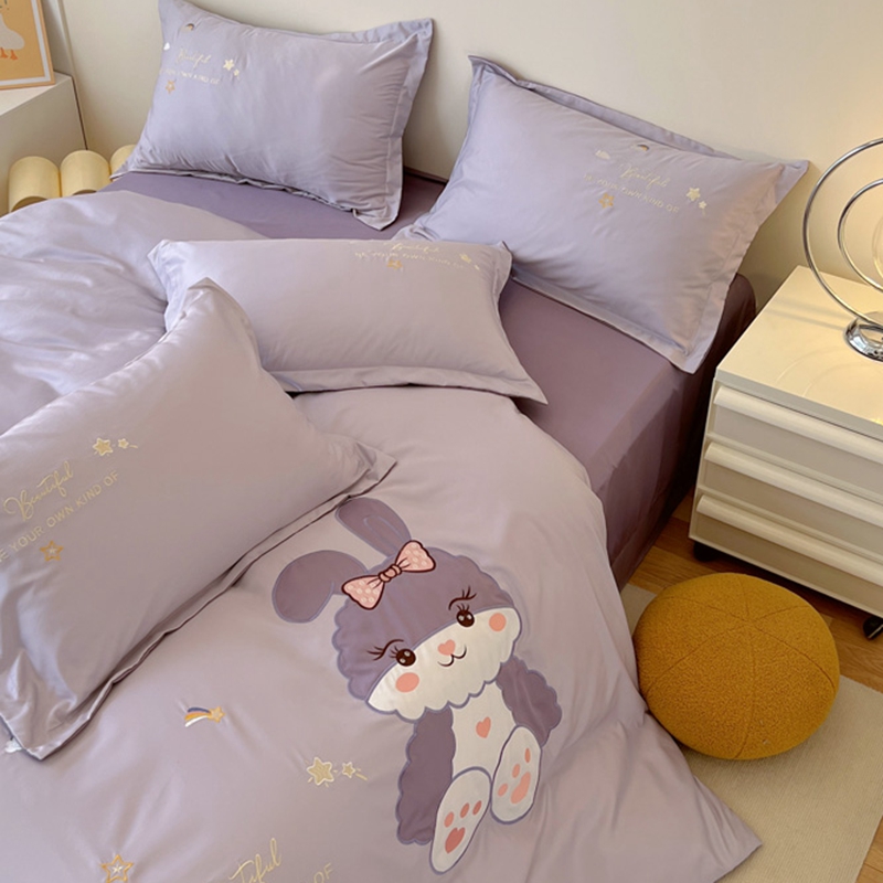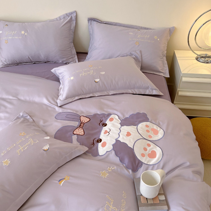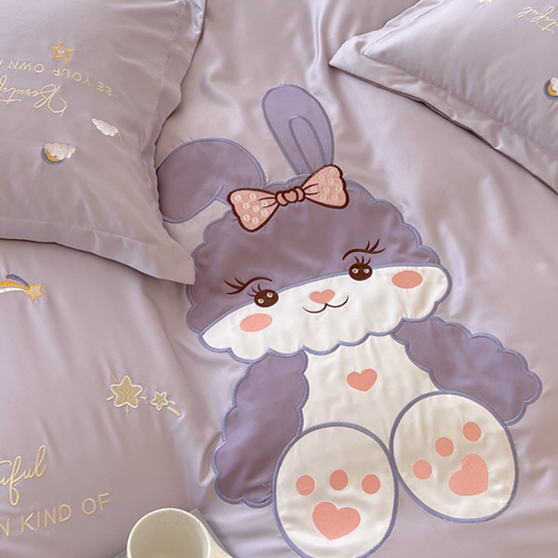 凡客家居 2024新款水洗真丝绣花四件套 大兔兔