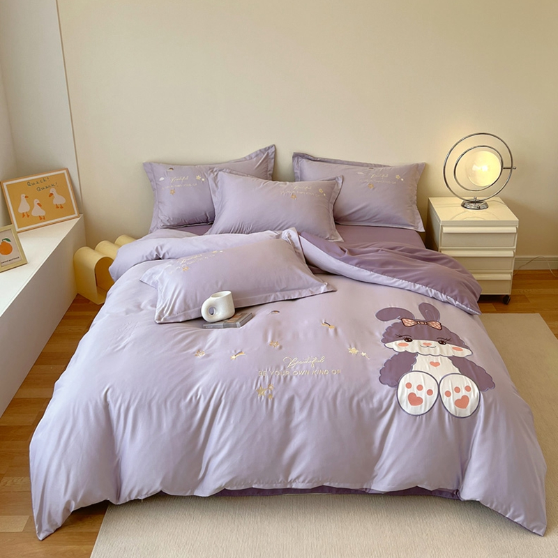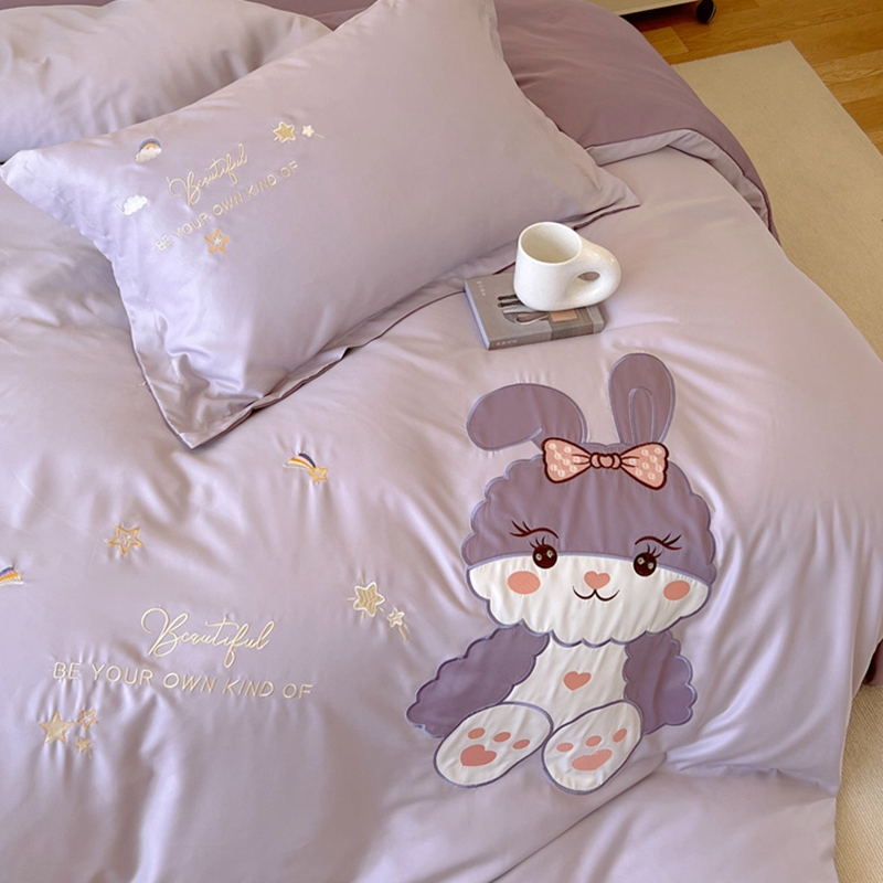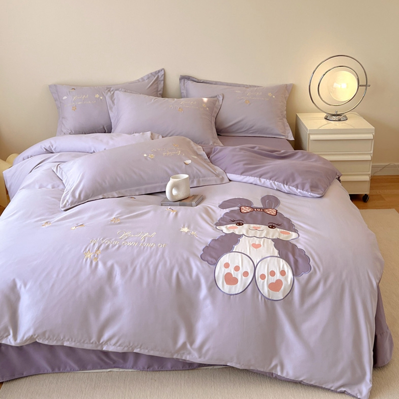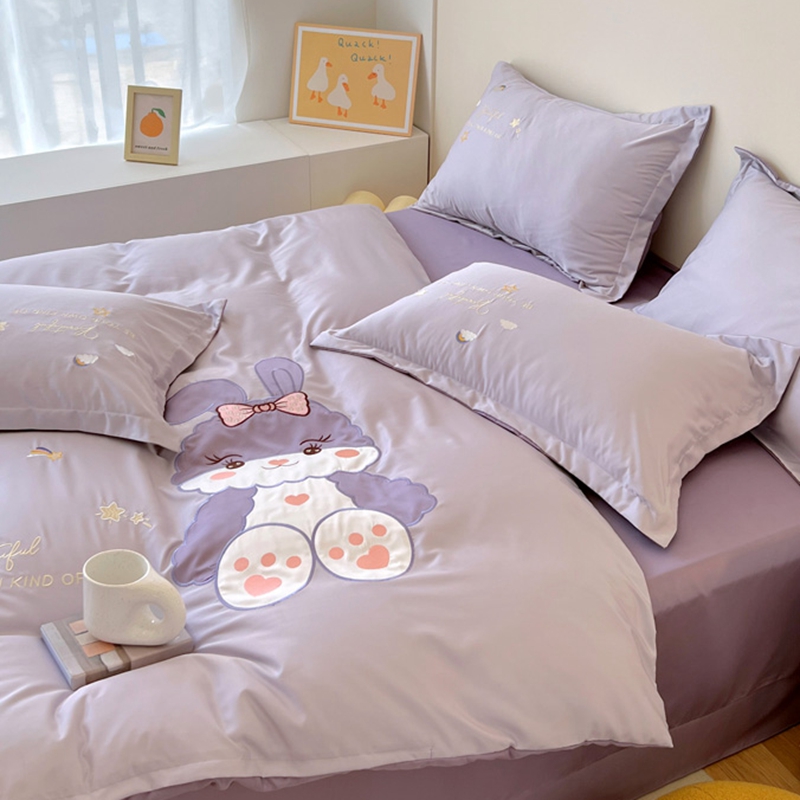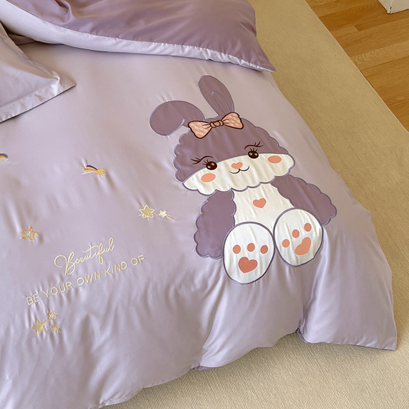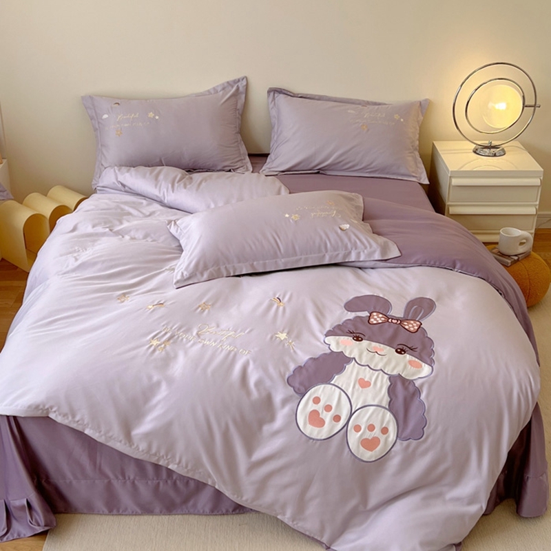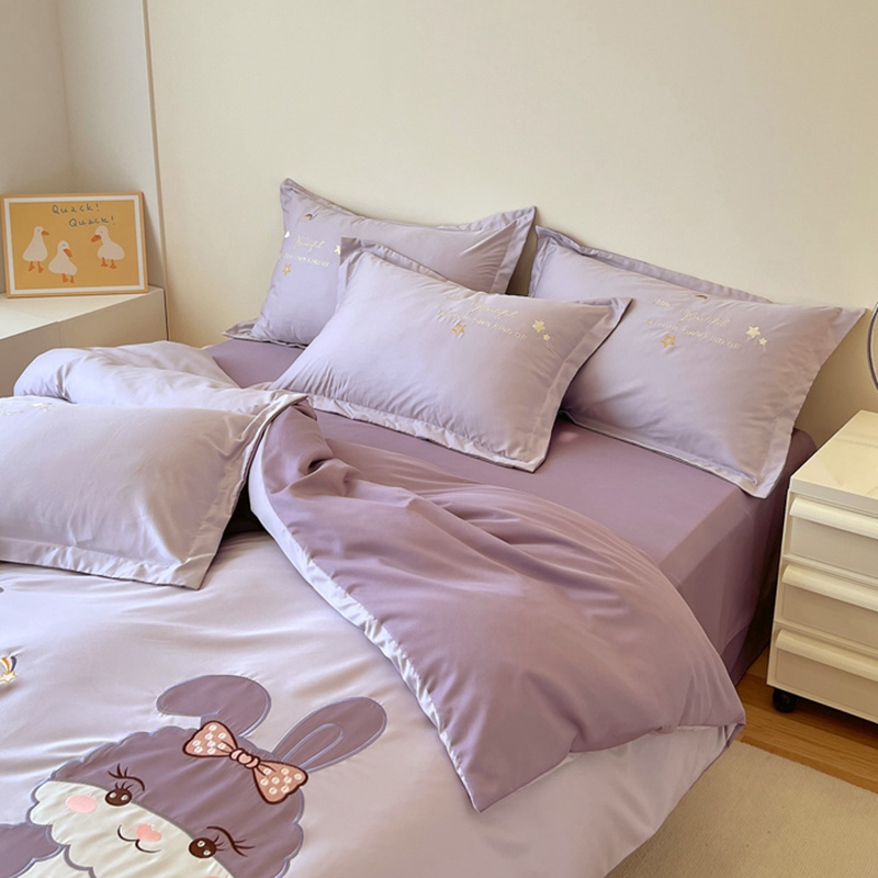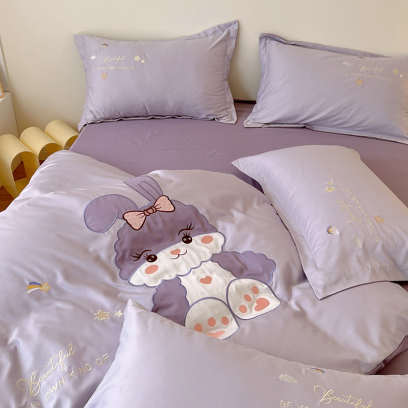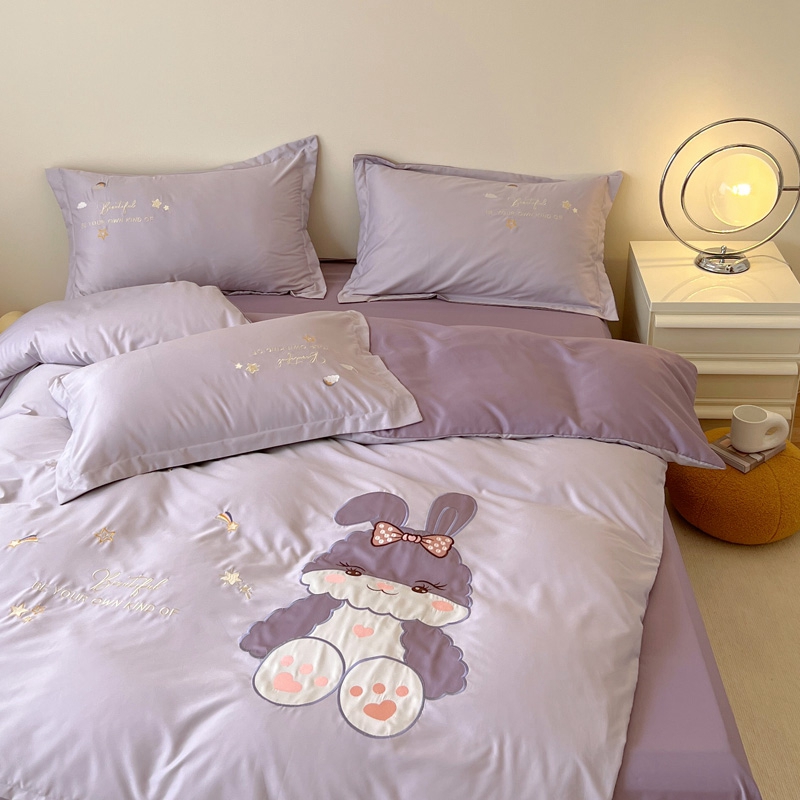 凡客家居 2024新款水洗真丝绣花四件套 大兔兔