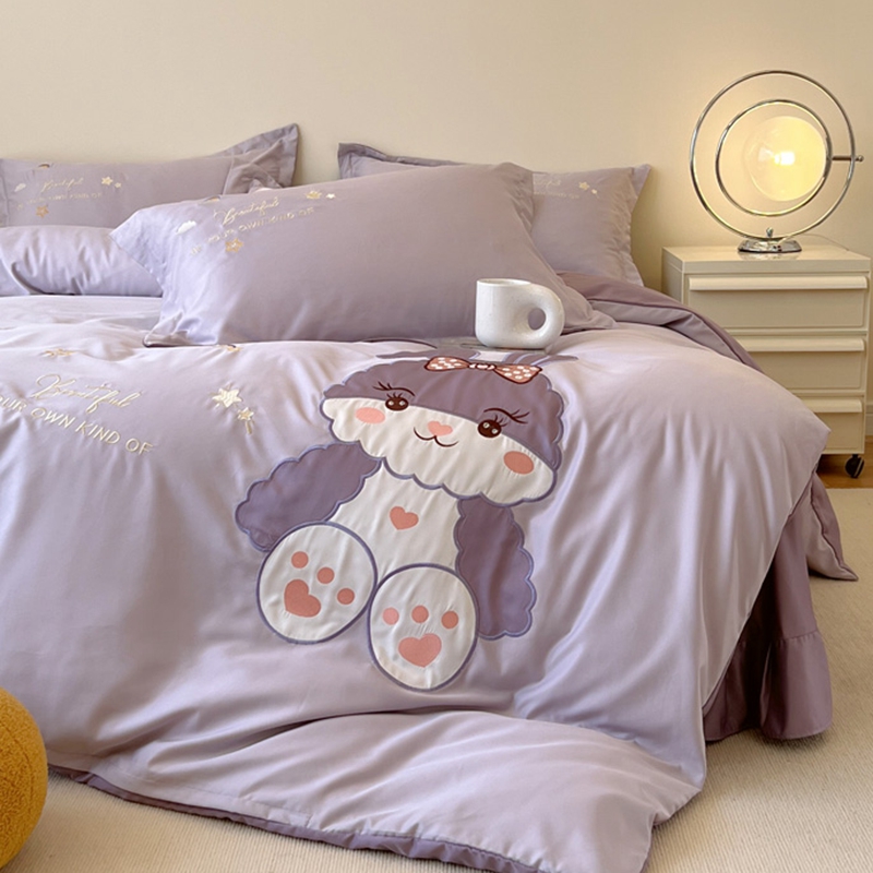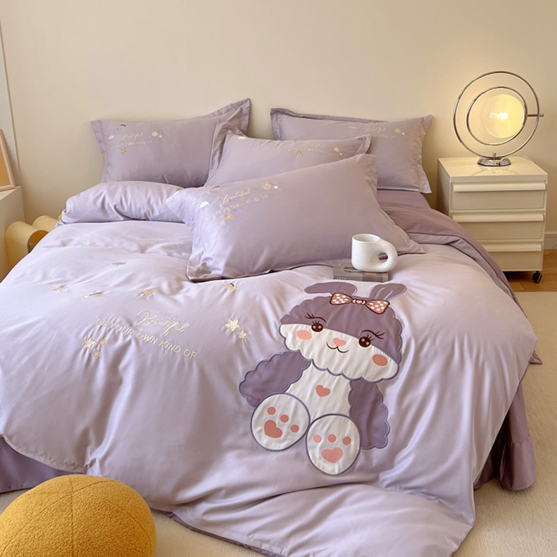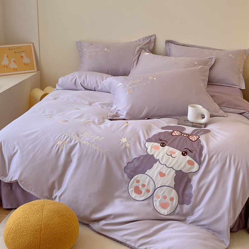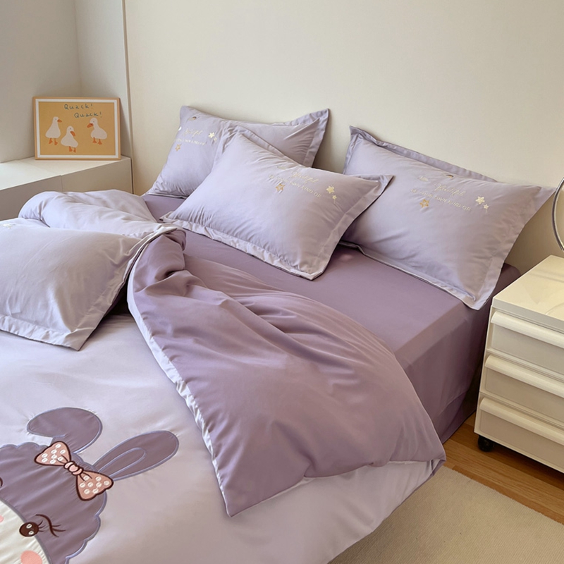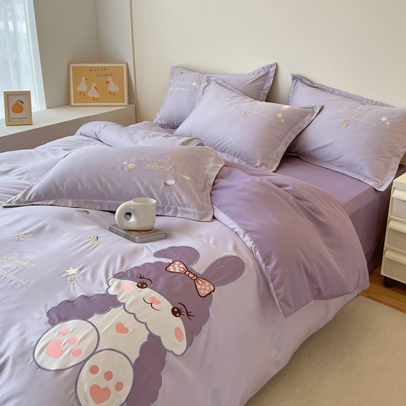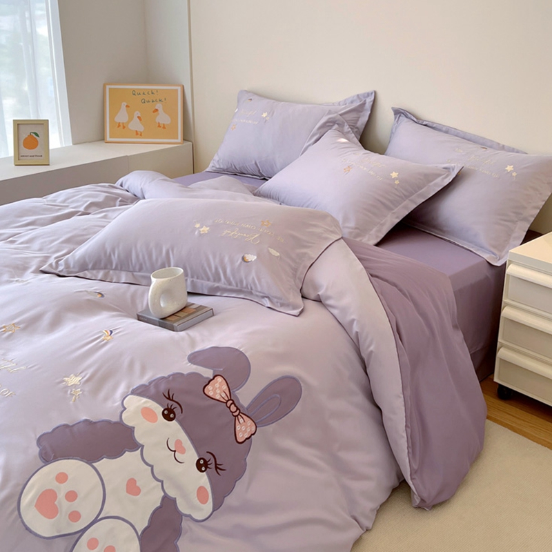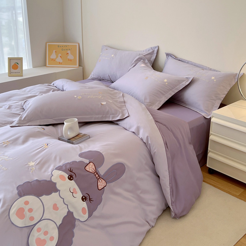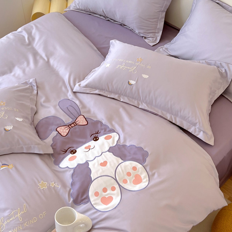 凡客家居 2024新款水洗真丝绣花四件套 大兔兔