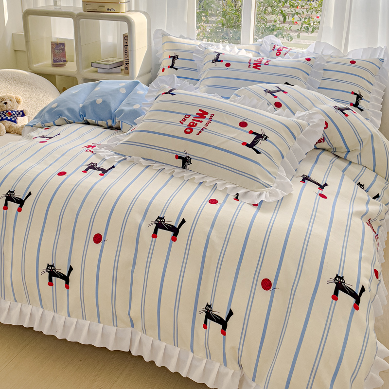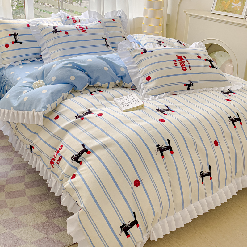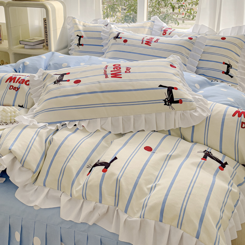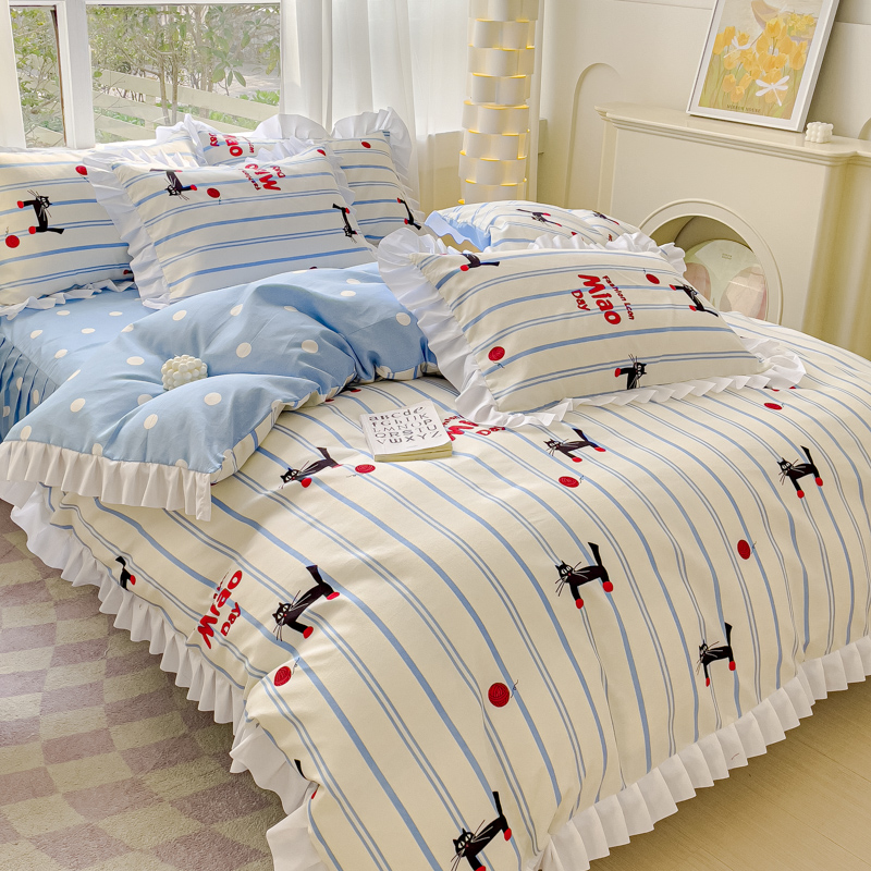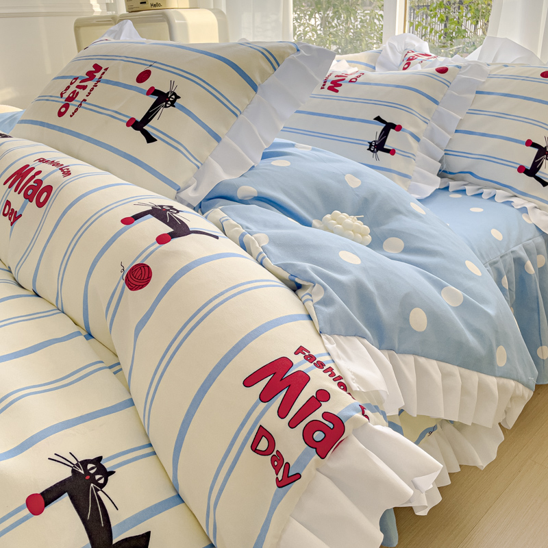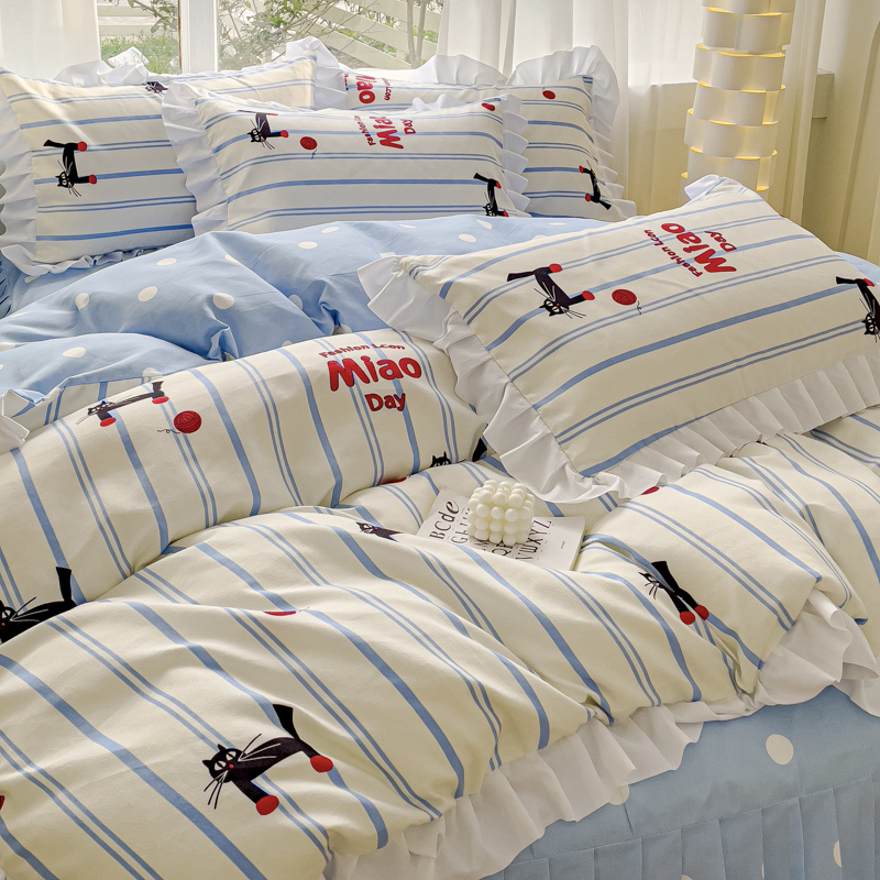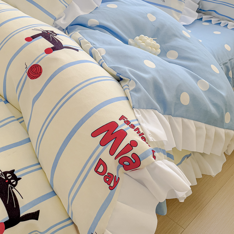 麦瑞家纺 2024新款韩版公主风花边四件套 cat猫