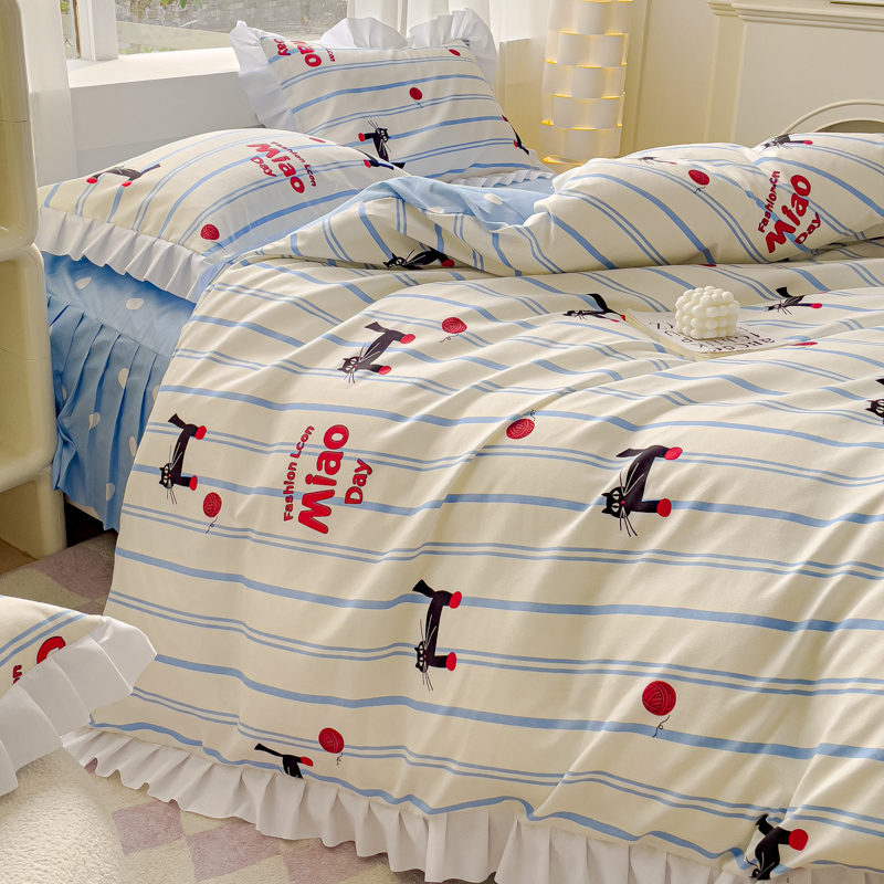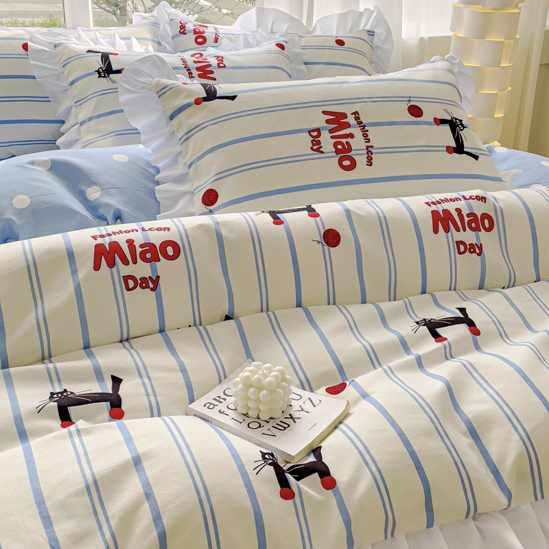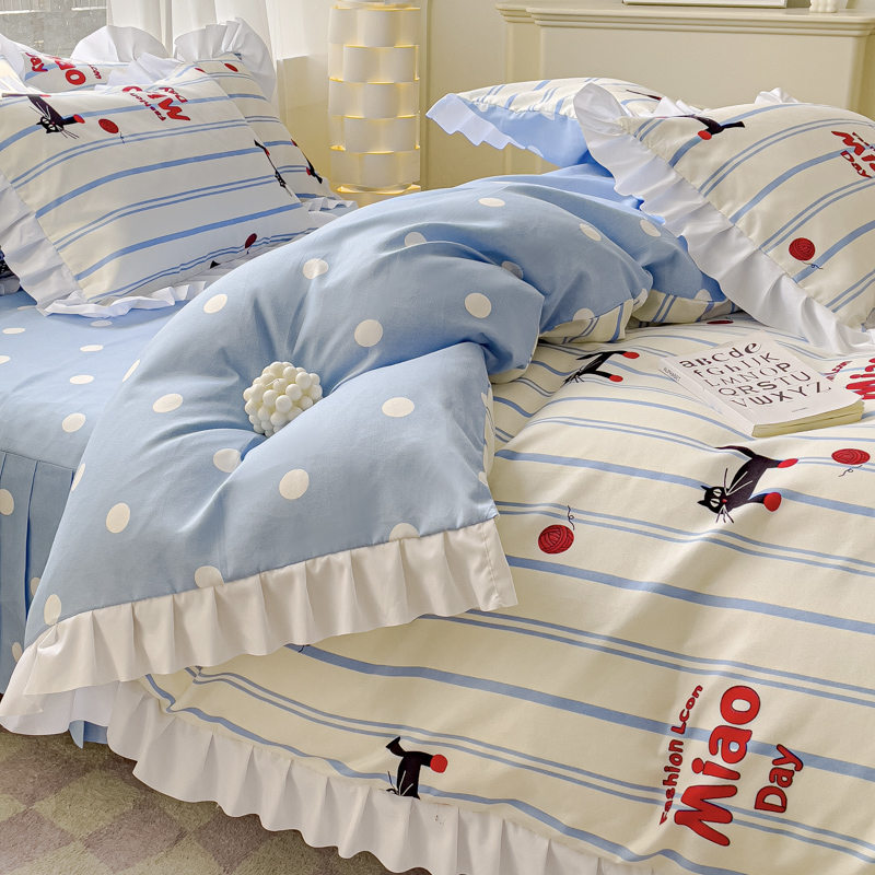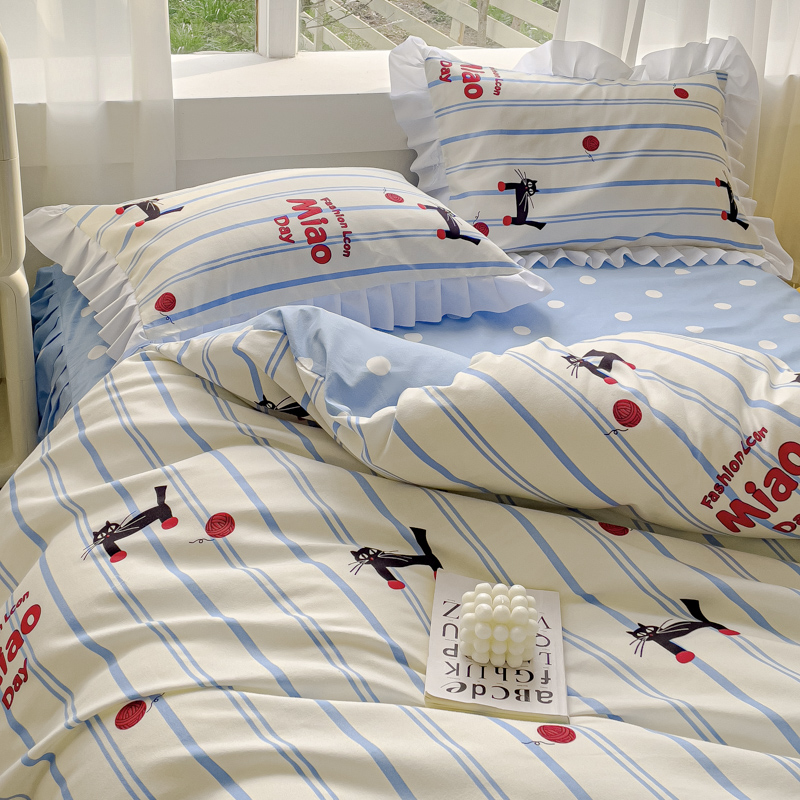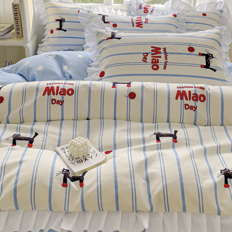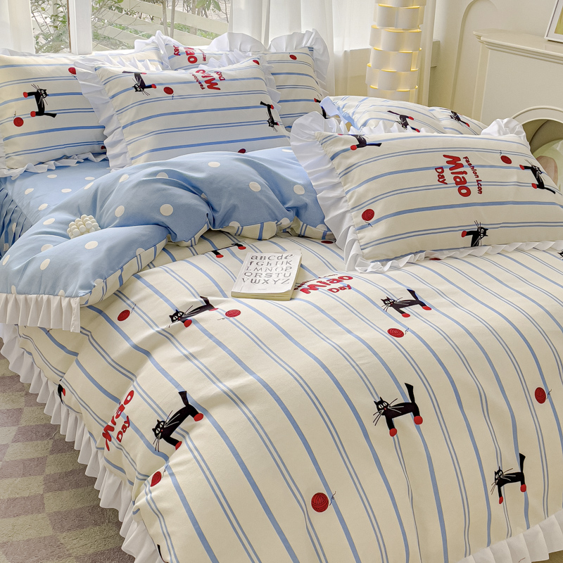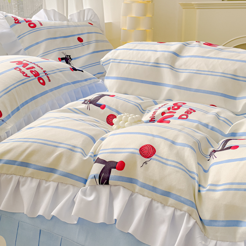 麦瑞家纺 2024新款韩版公主风花边四件套 cat猫