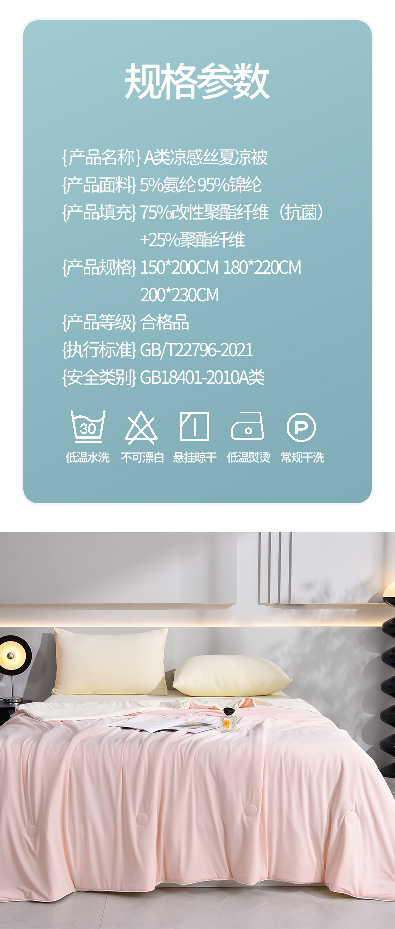 商品名称:梦依依 2025新款冰淇淋凉感丝抗菌夏被 粉玉