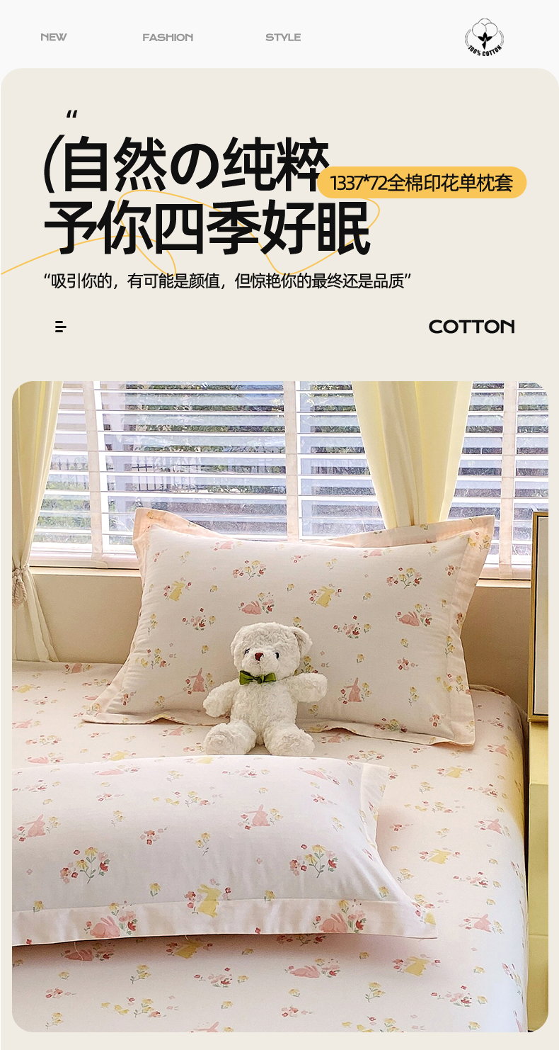 宝齐莱家纺 2024新款13372全棉印花系列单品枕套 集美