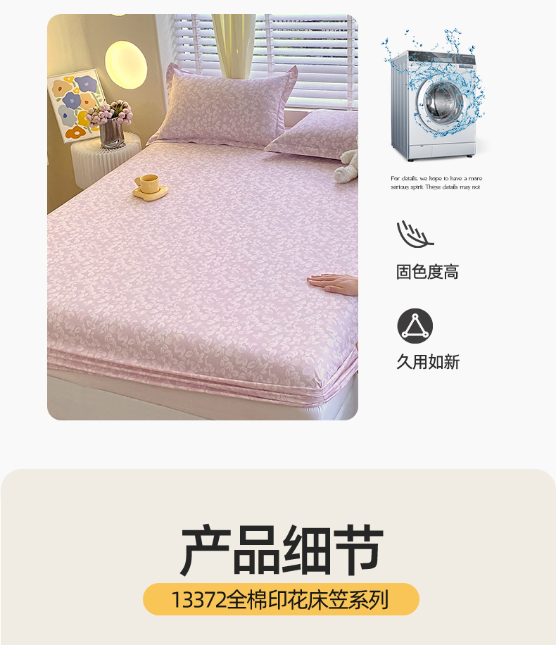 • 91家纺网 家纺一手货源 找家纺 宝齐莱家纺 2024新款13372全棉印花系列单品床笠 花影-粉