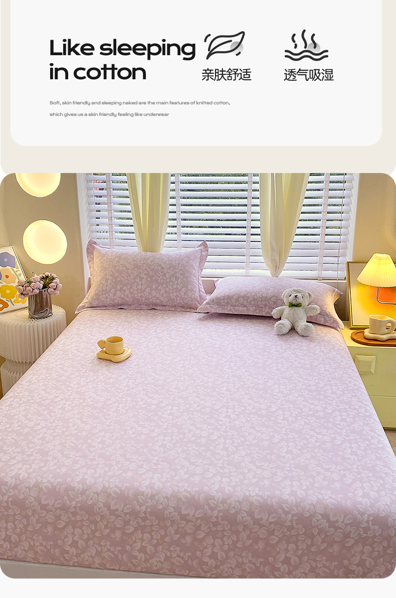 宝齐莱家纺 2024新款13372全棉印花系列单品床笠 花影-粉