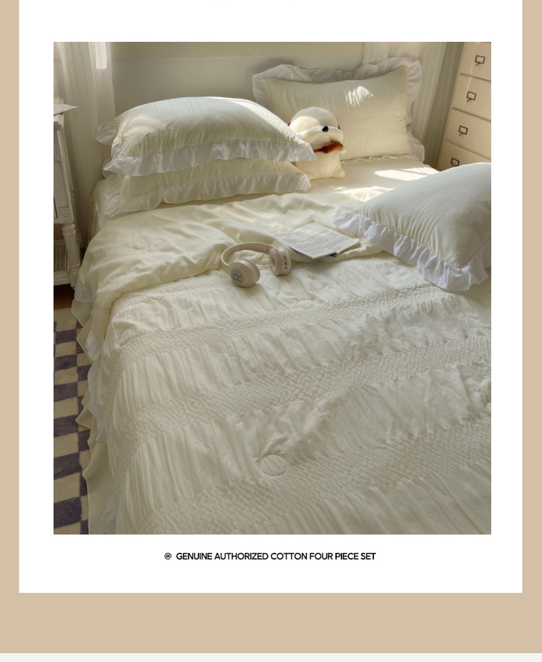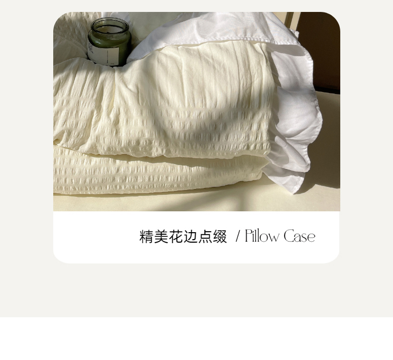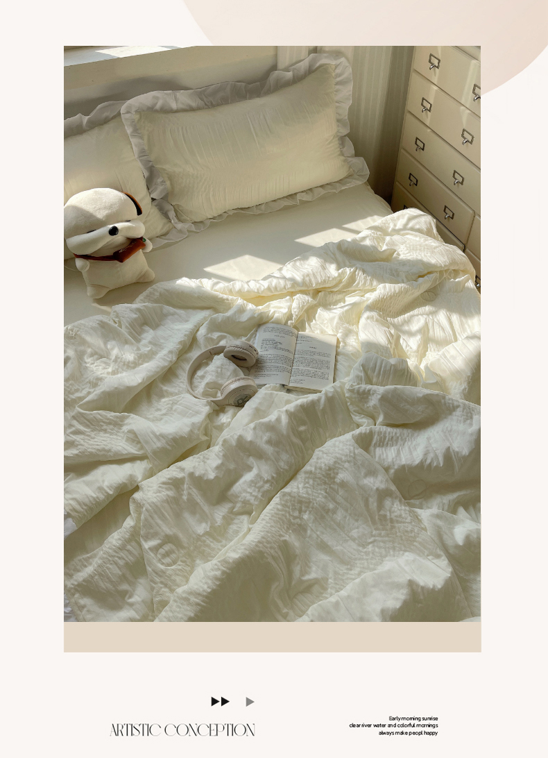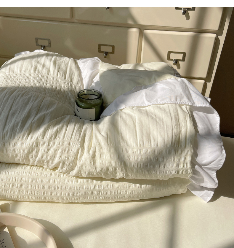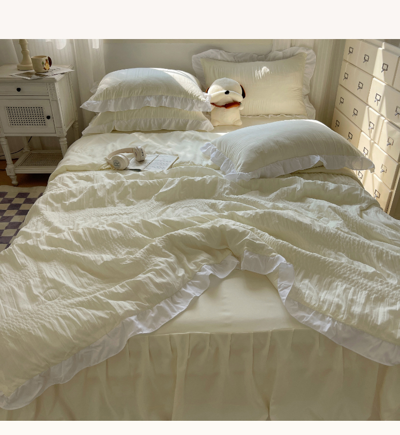 当前位置: 91家纺网 > 商品网购 > 床品套件 > 四件套 > 水洗棉四件套 > 十里居 2024新款泡泡纱韩版花边床裙款水洗棉夏被四件套 奶昔白