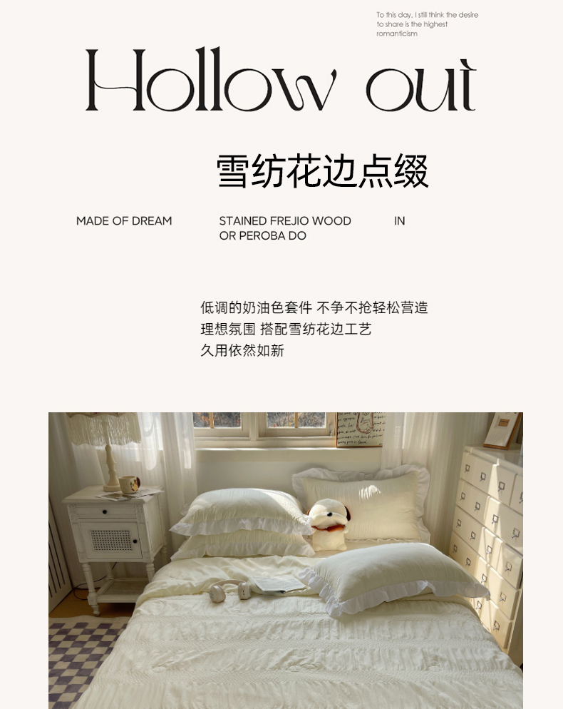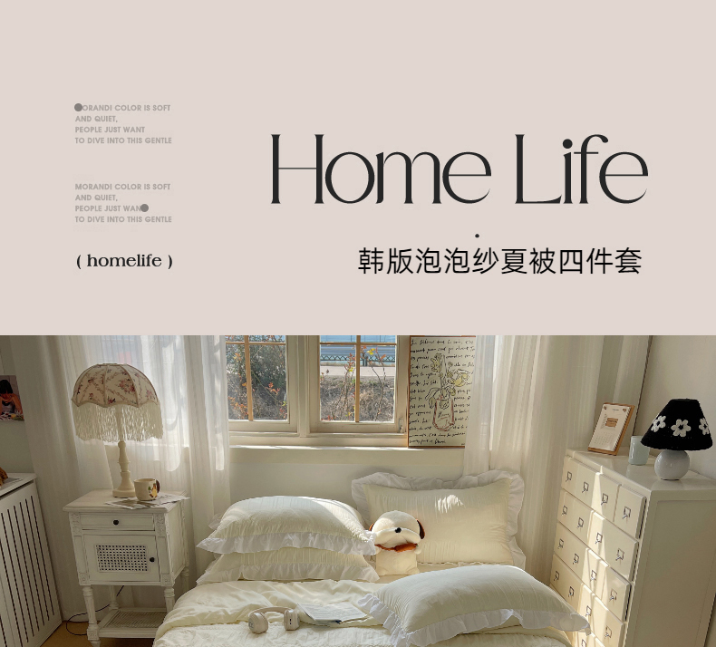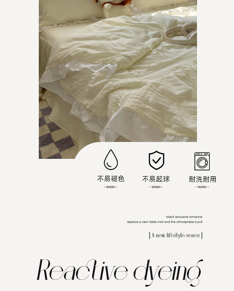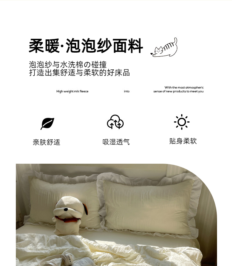 当前位置: 91家纺网 > 商品网购 > 床品套件 > 四件套 > 水洗棉四件套 > 十里居 2024新款泡泡纱韩版花边床裙款水洗棉夏被四件套 奶昔白