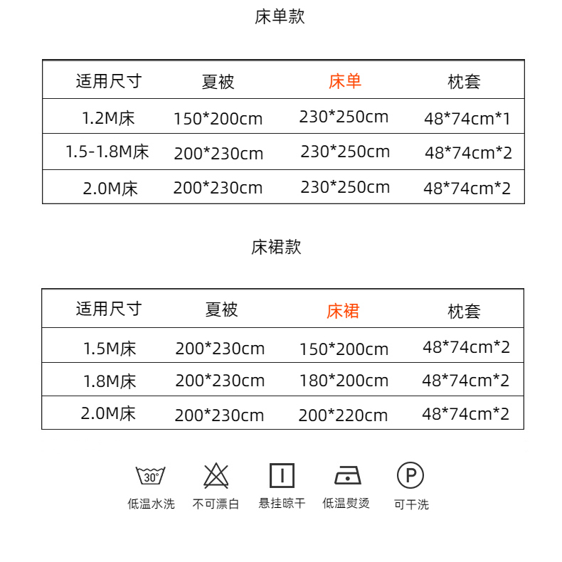 1.5m床裙款夏被四件套 | ¥98.00 |