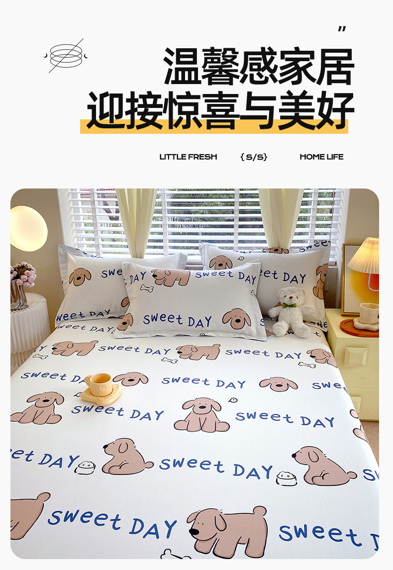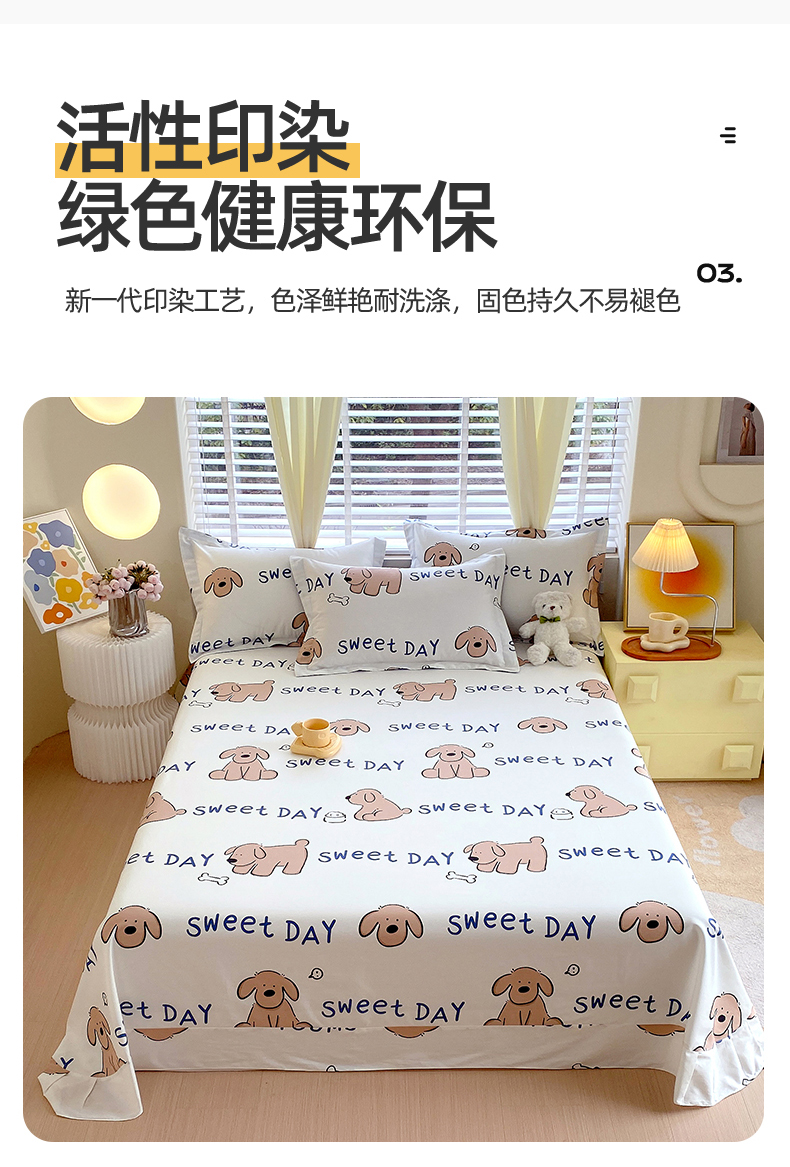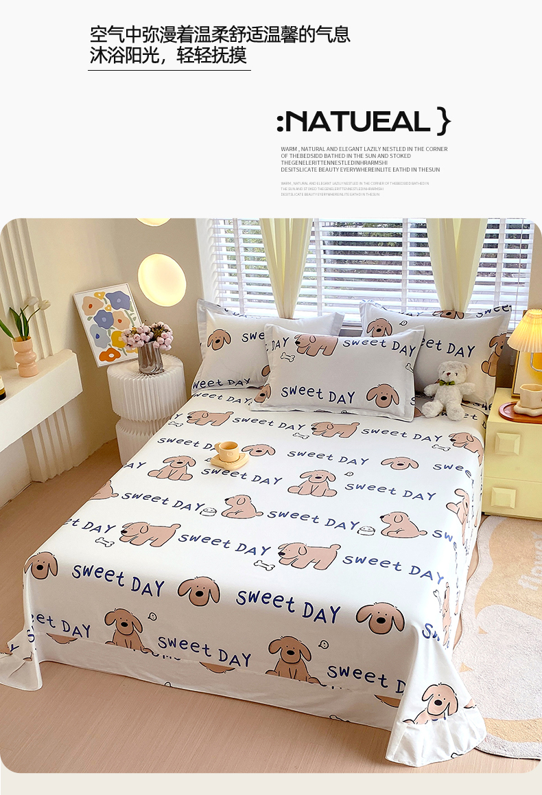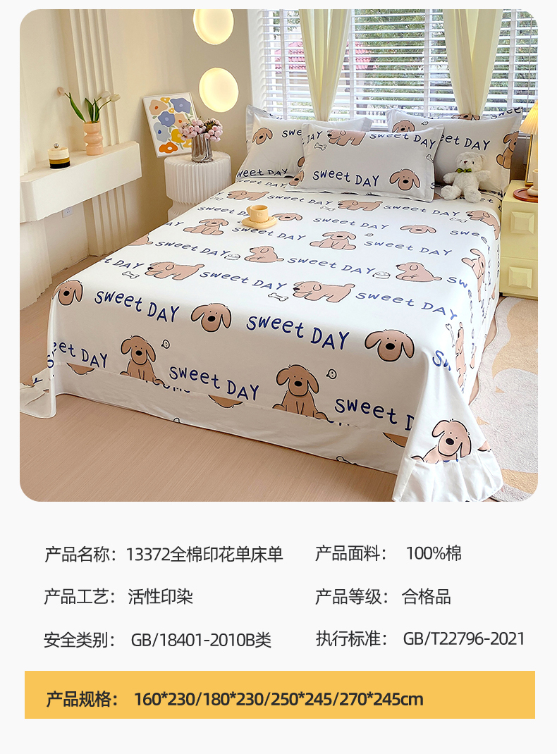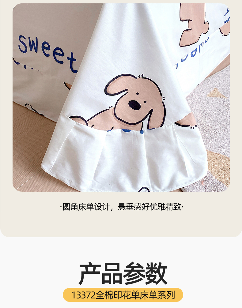 • 91家纺网 家纺一手货源 找家纺 宝齐莱家纺 2024新款13372全棉印花四件套单品系列-床单 奶糖