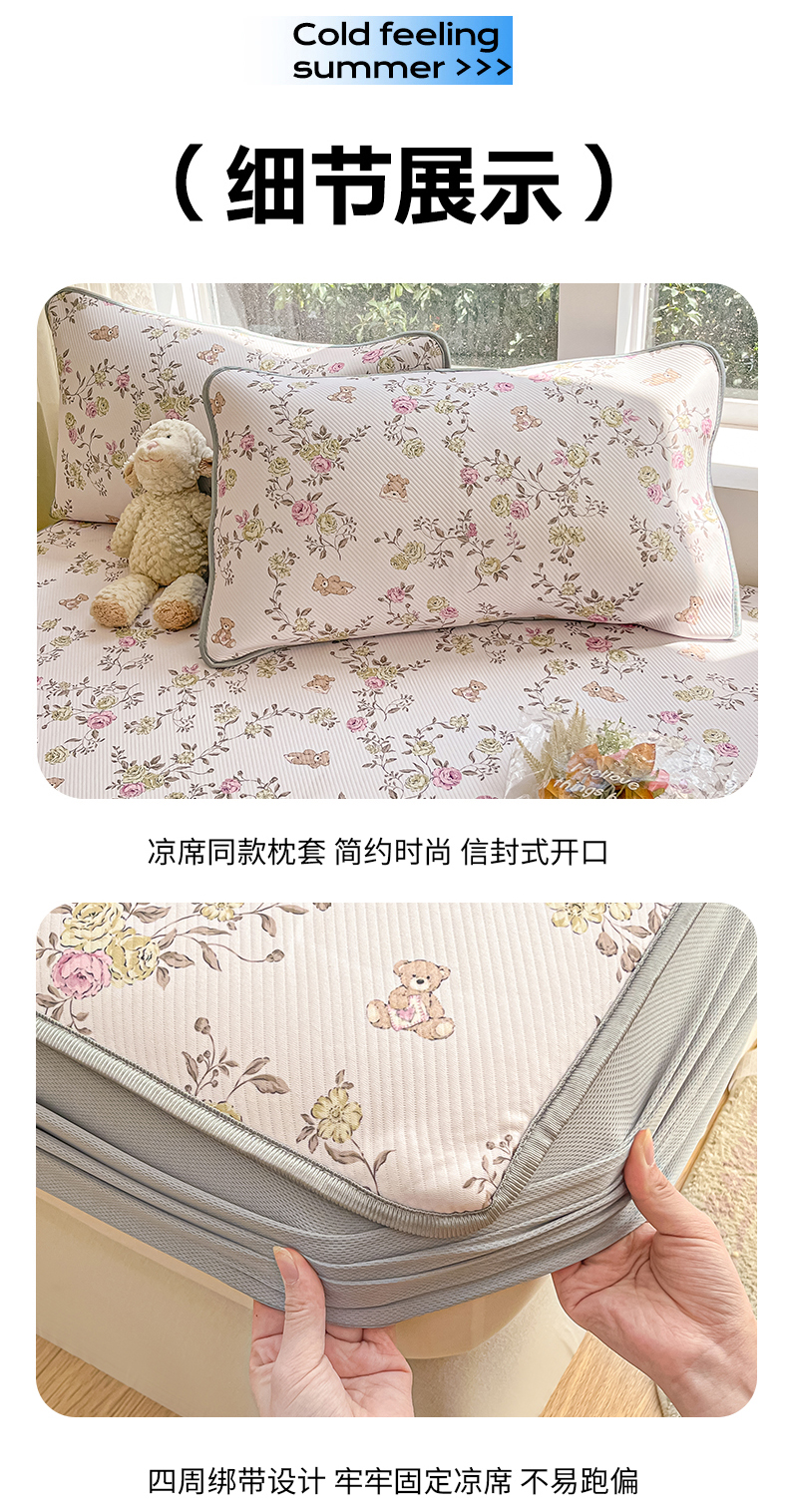 商品名称:星座 2025大斜纹复合冰丝凉席床笠款 小熊花园-床笠款