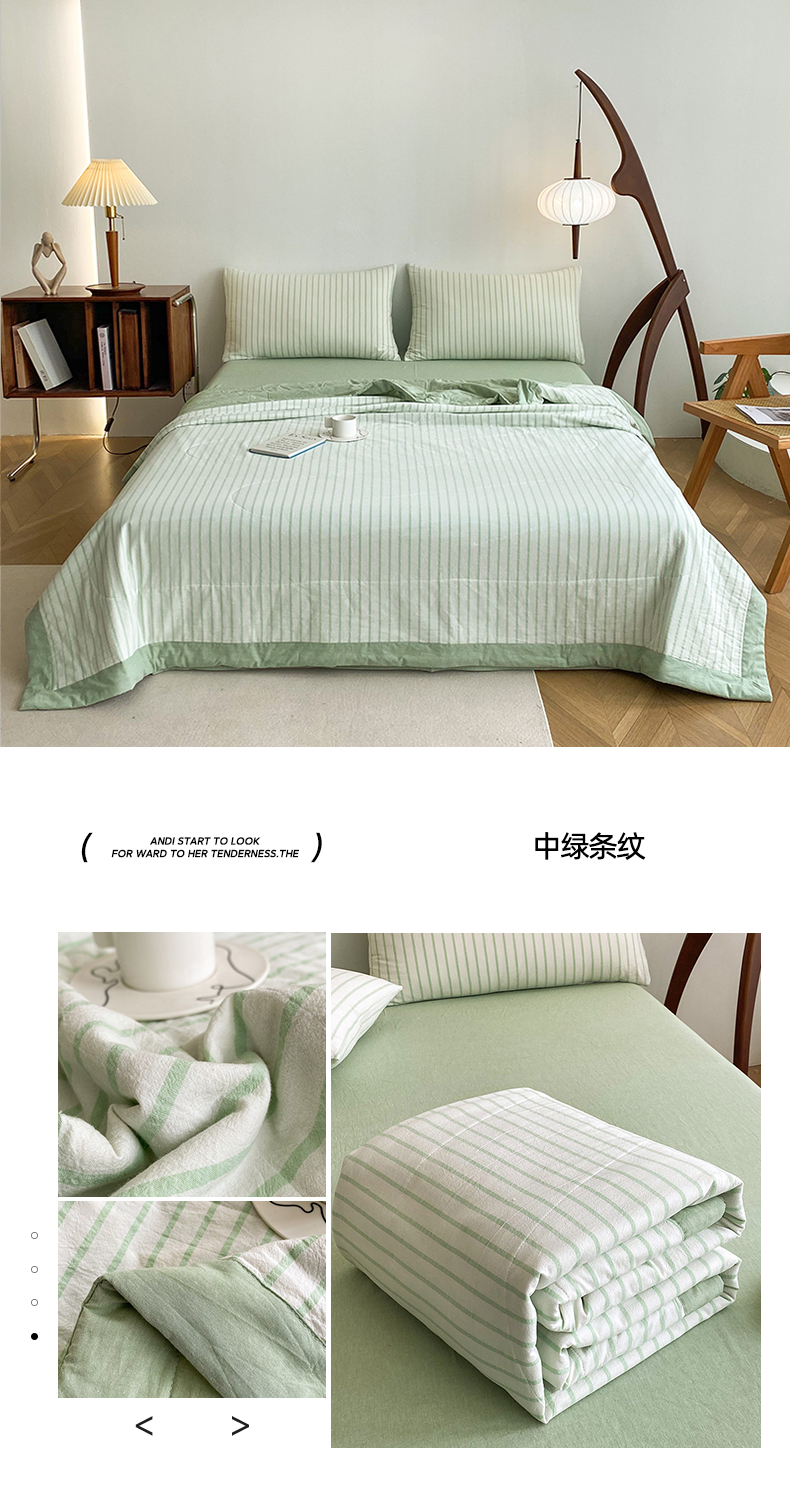 商品名称:青螺家纺 双面全棉色织水洗棉新疆棉花被百分百(支持质检)中绿条纹