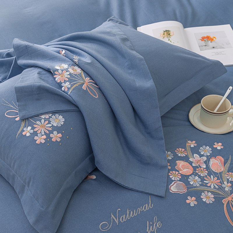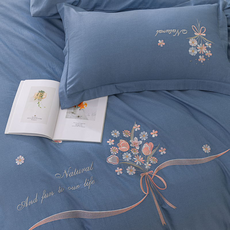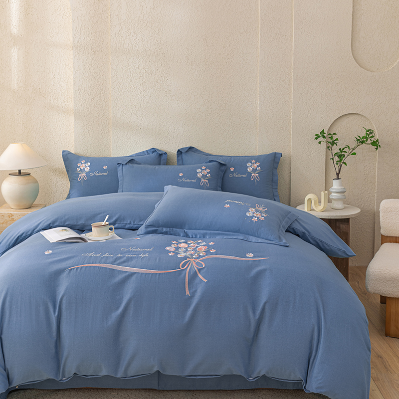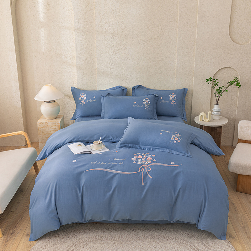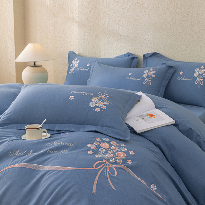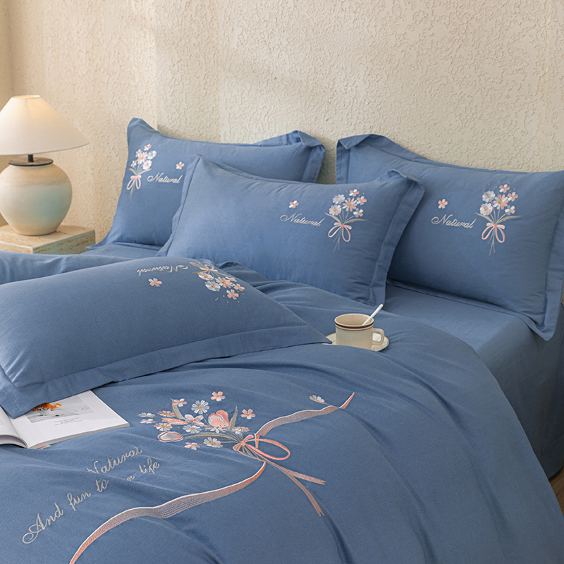 绒博士 2024新款全棉磨毛暗合四件套-倾城之恋 宾利蓝