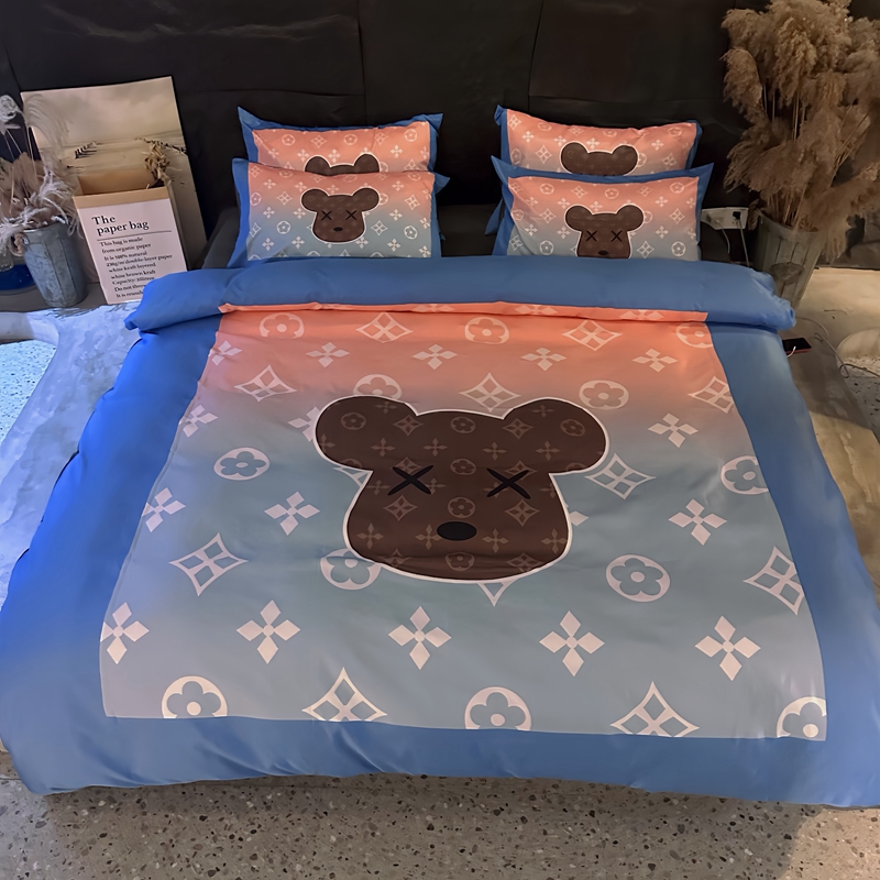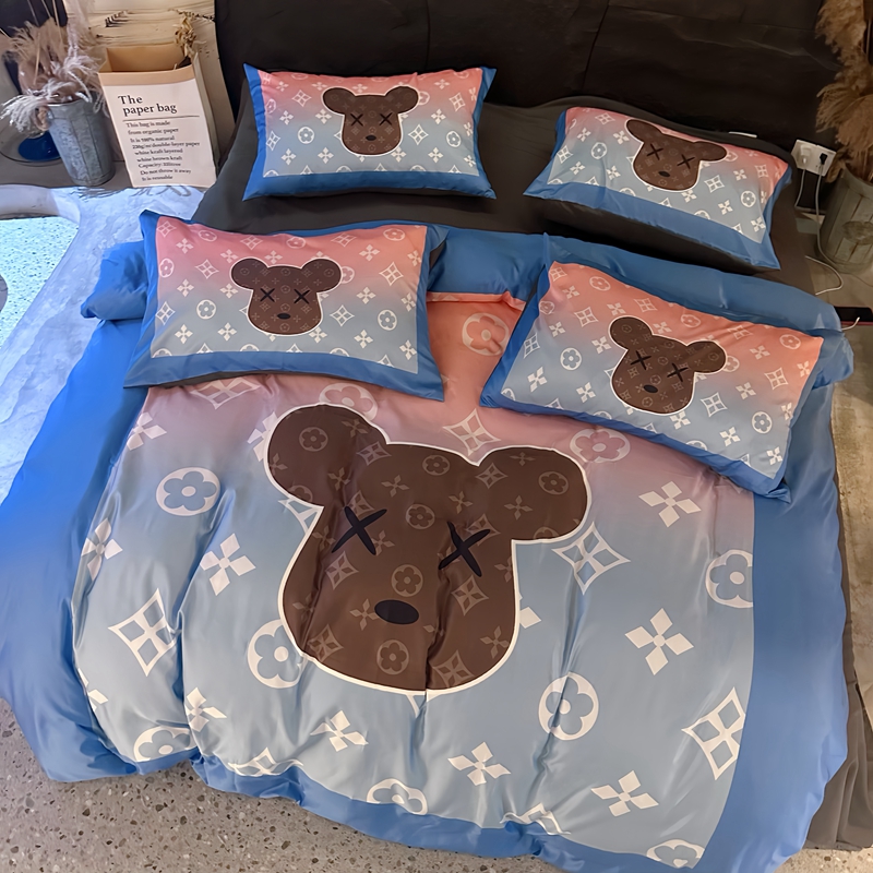 商品名称:色鬼布艺 2024新款双面进口冰丝数码印花四件套水洗真丝四件套 冰丝寻彩熊