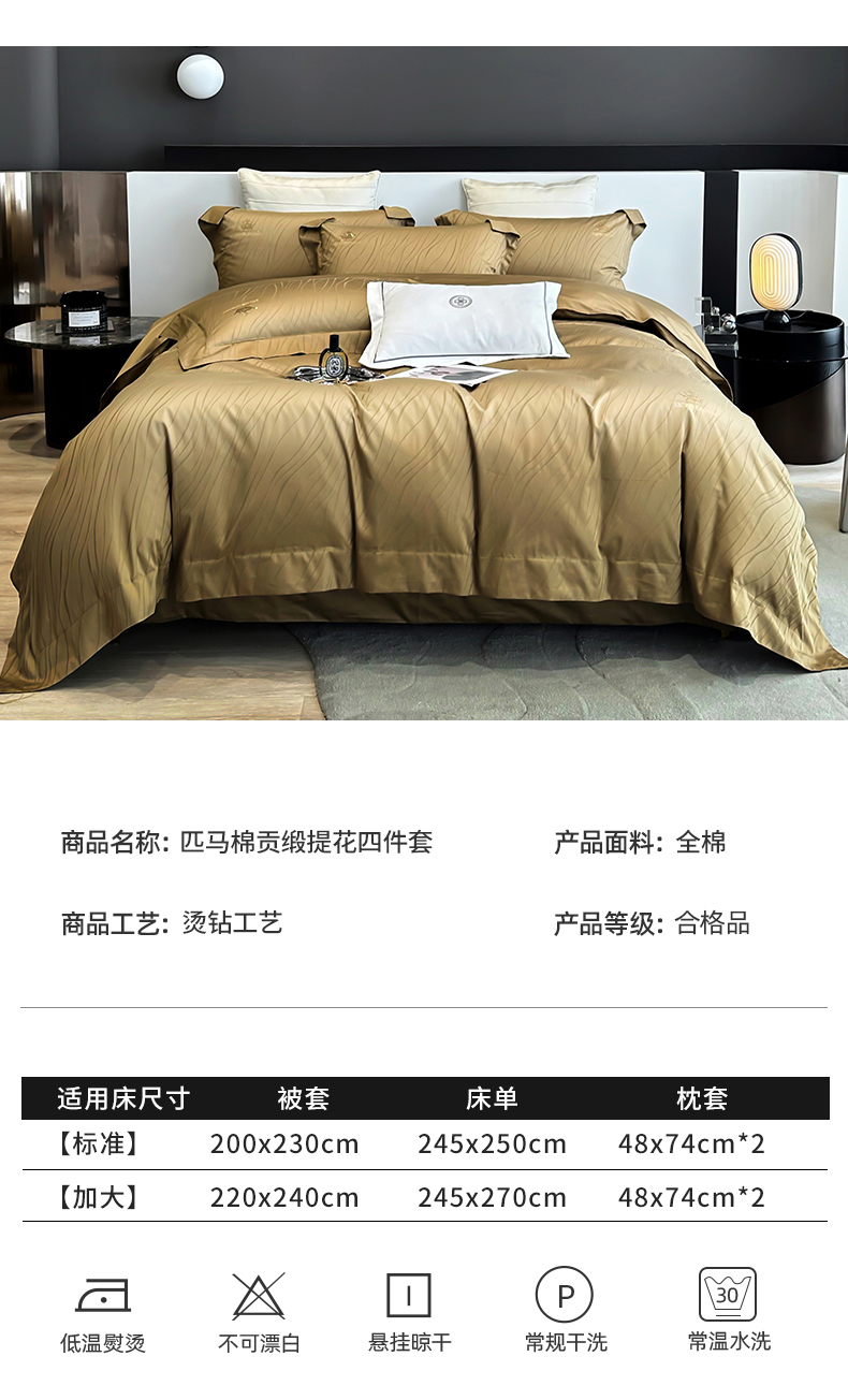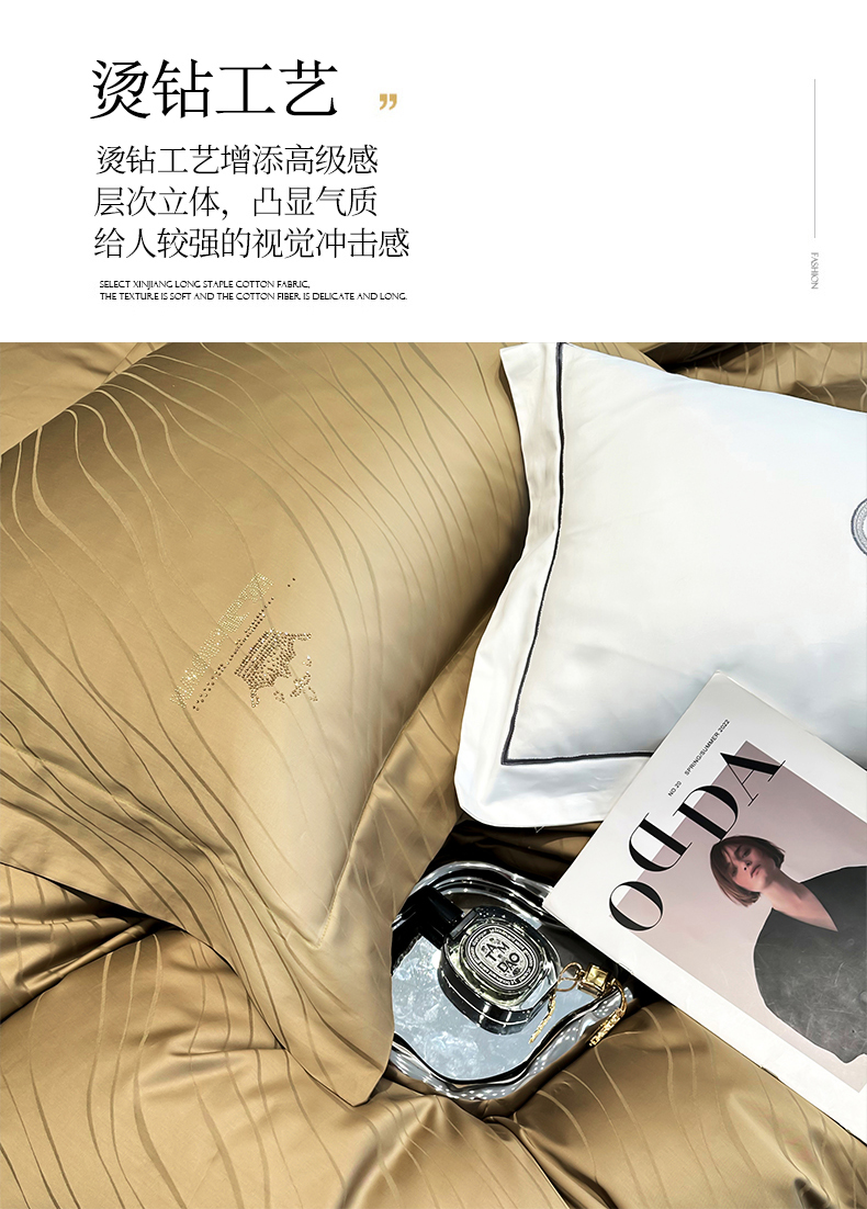 商品名称:2025新款长绒棉全棉提花烫钻四件套--黛娜系列 冰咖啡