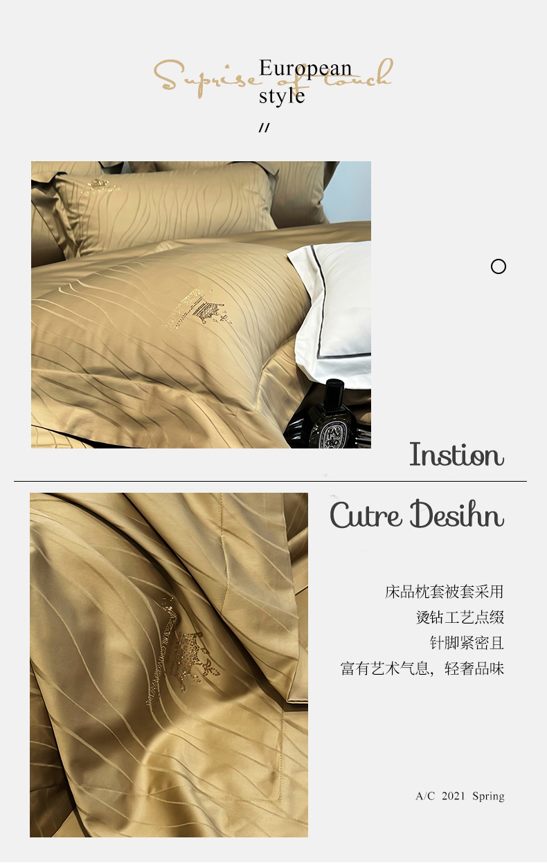2025新款长绒棉全棉提花烫钻四件套--黛娜系列 冰咖啡