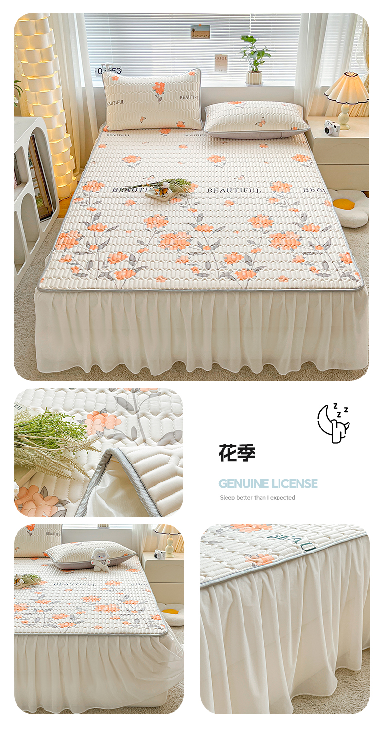 • 91家纺网 家纺一手货源 找家纺 福来临 2025印花含胶床裙 含胶床裙-花季