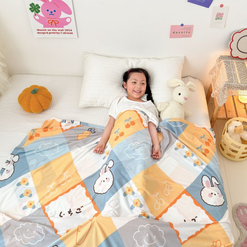 星期八 2024新款舒适亲肤婴儿裸睡级卡通印花凉感毯 兔子屋