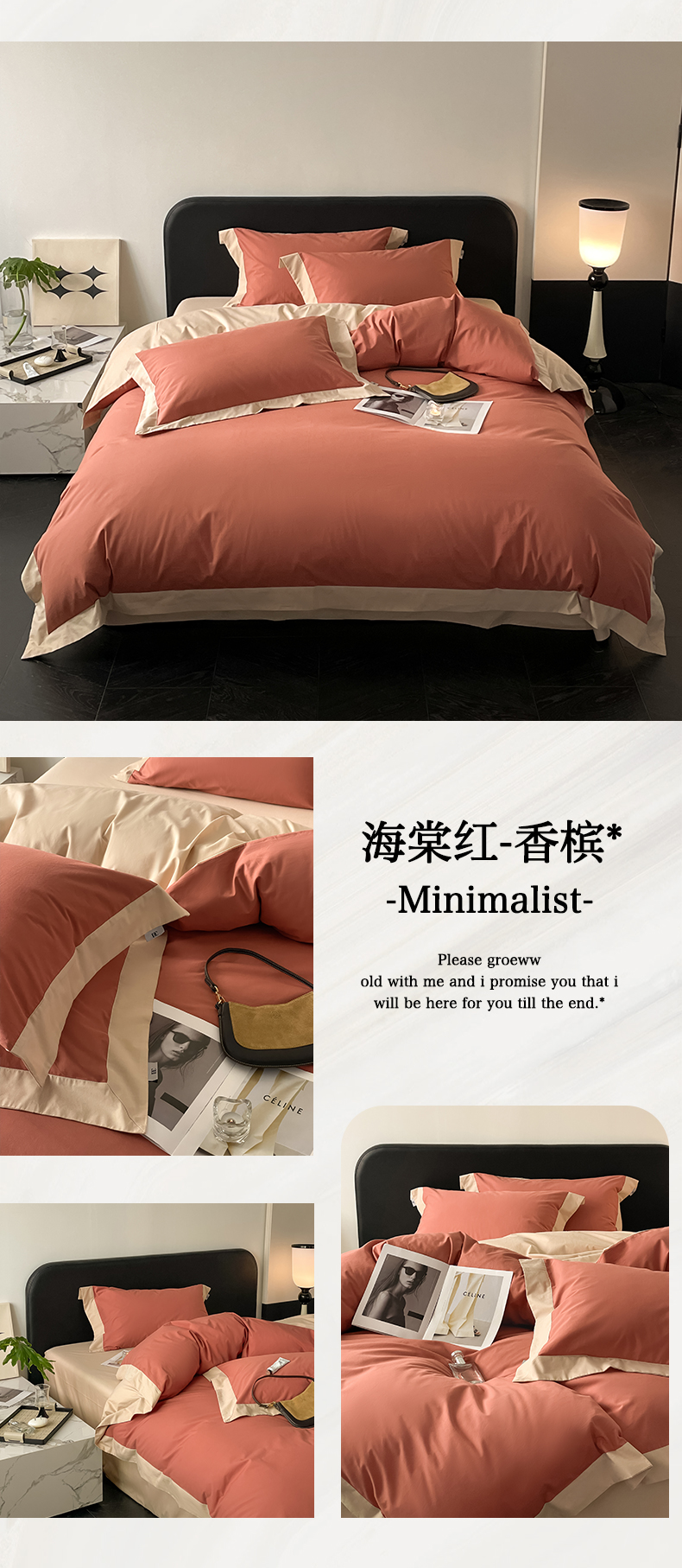 商品名称:金麦家纺 2024新款A类全棉水洗棉礼盒装纯色双拼系列四件套 海棠红香槟