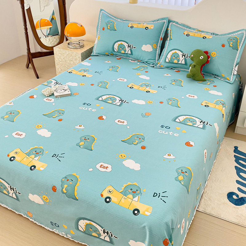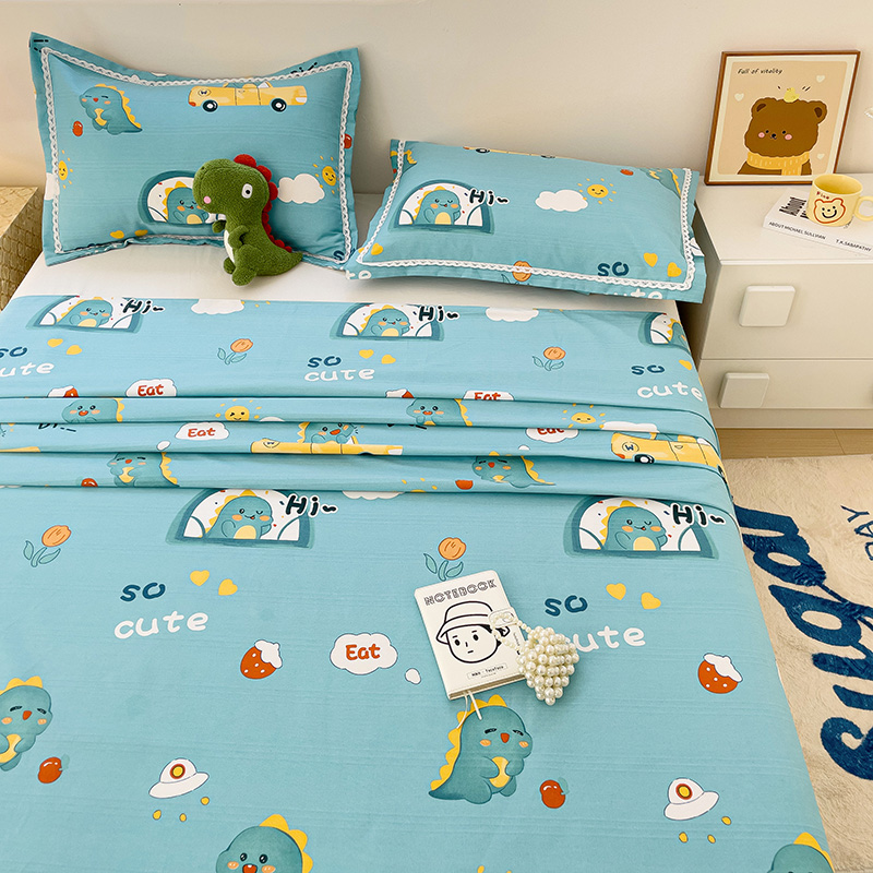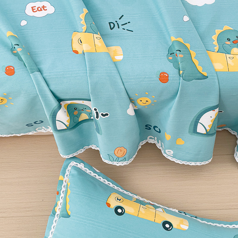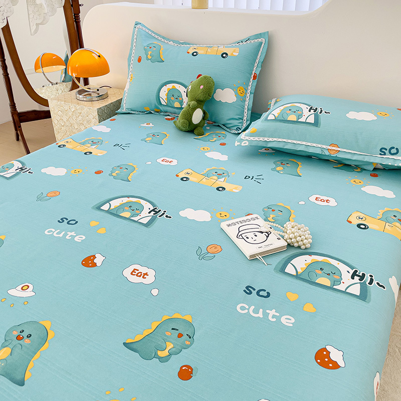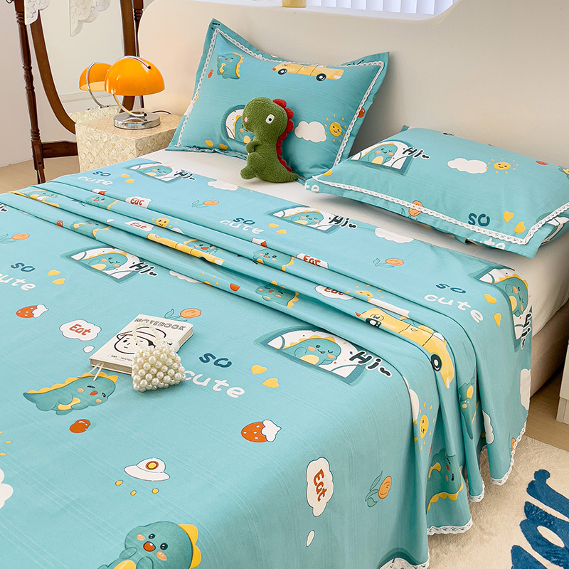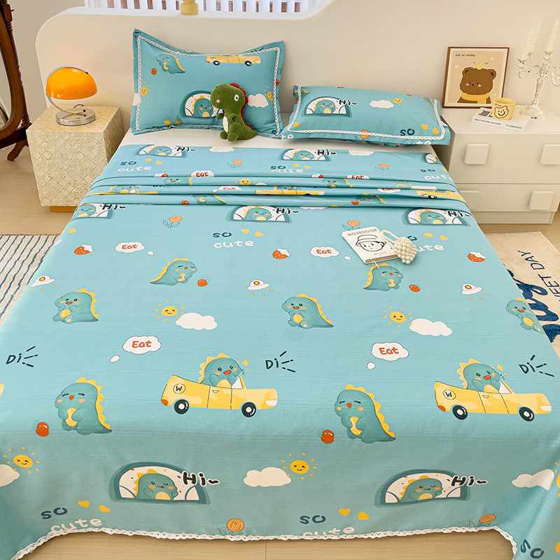 鸿羽樱 2024新款鱼骨棉老粗布凉席三件套 恐龙日记