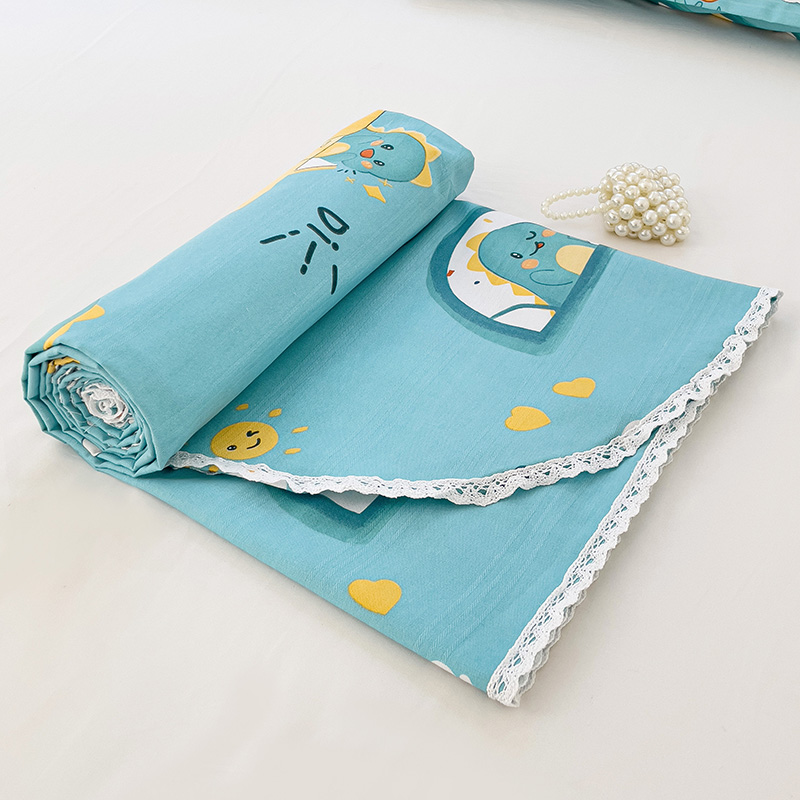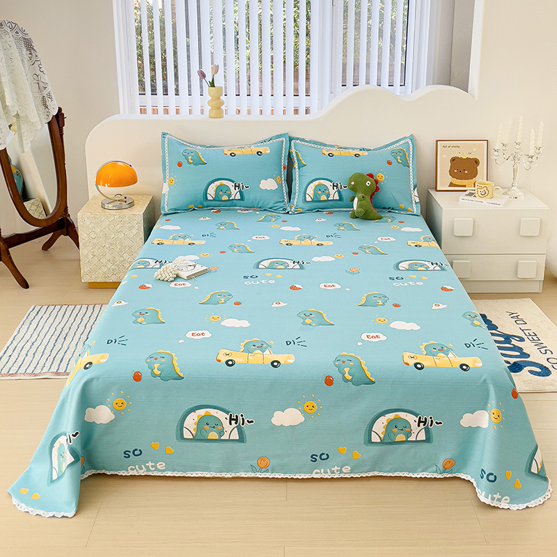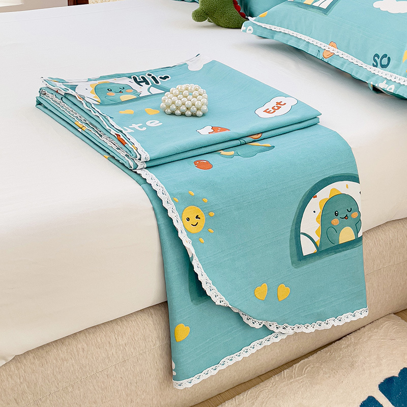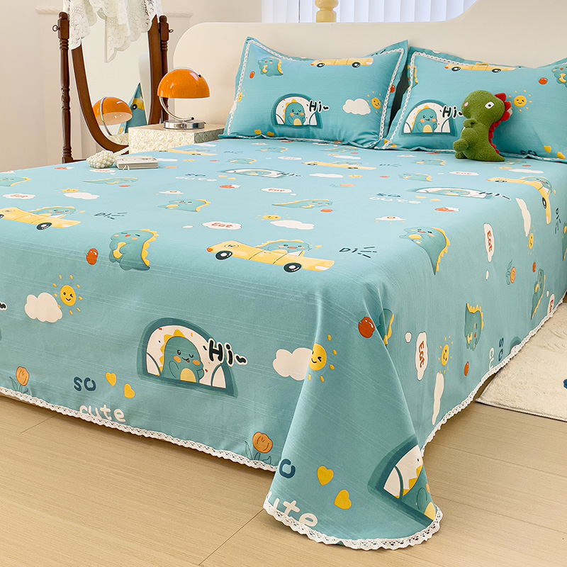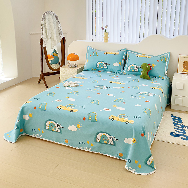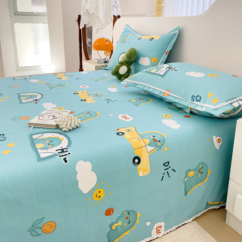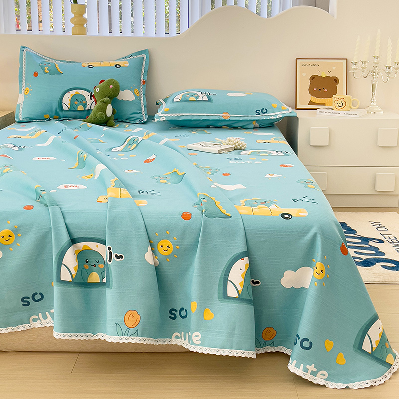 鸿羽樱 2024新款鱼骨棉老粗布凉席三件套 恐龙日记